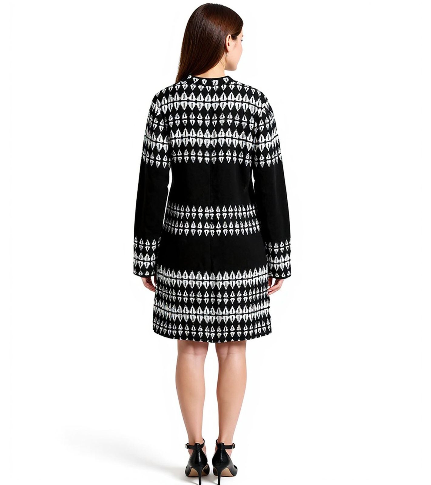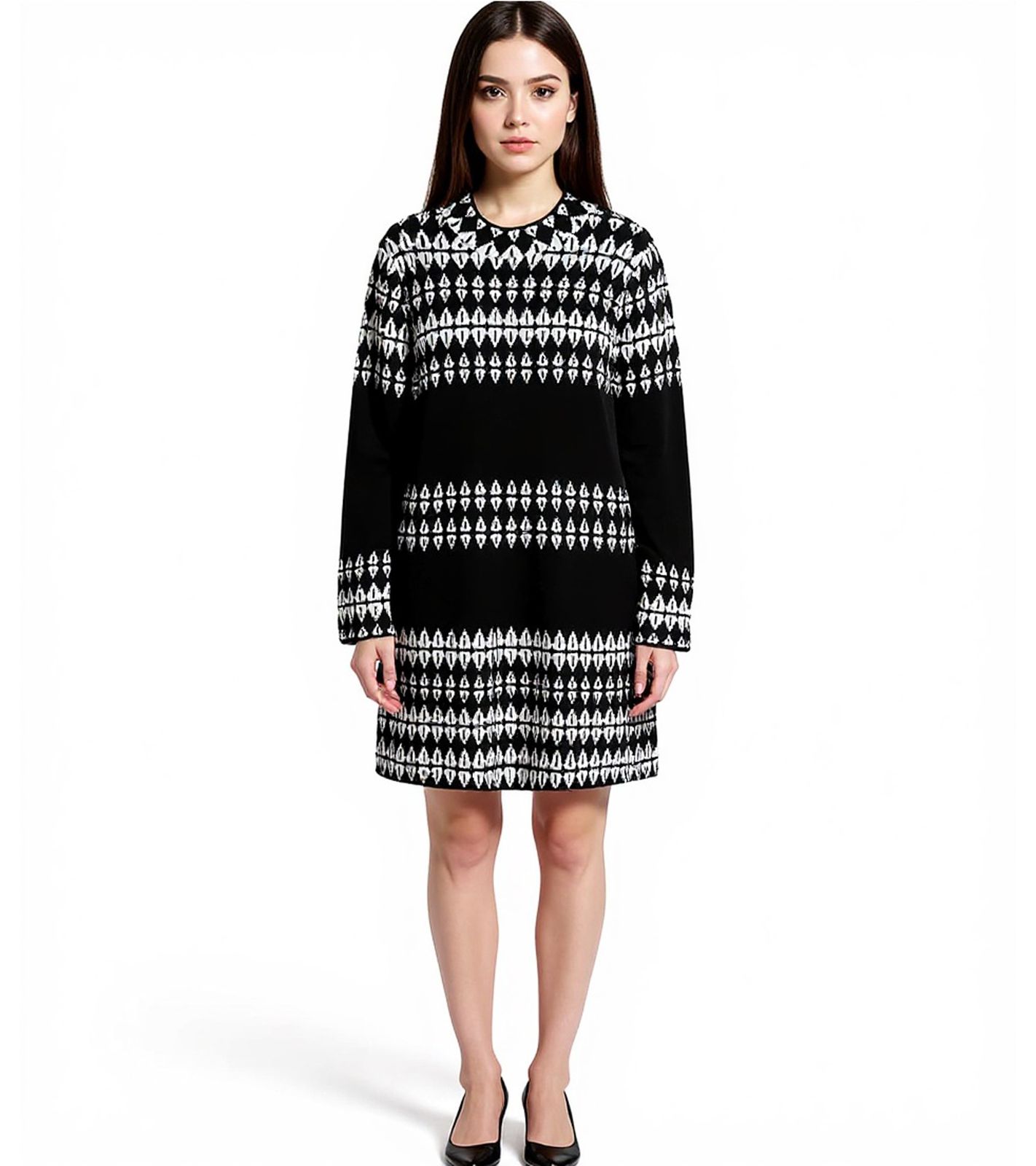 Damen Strick-Kleid mit Fairisle-Print Langarm-Kleid Herbst-Kleid 923627 Schwarz/Weiß