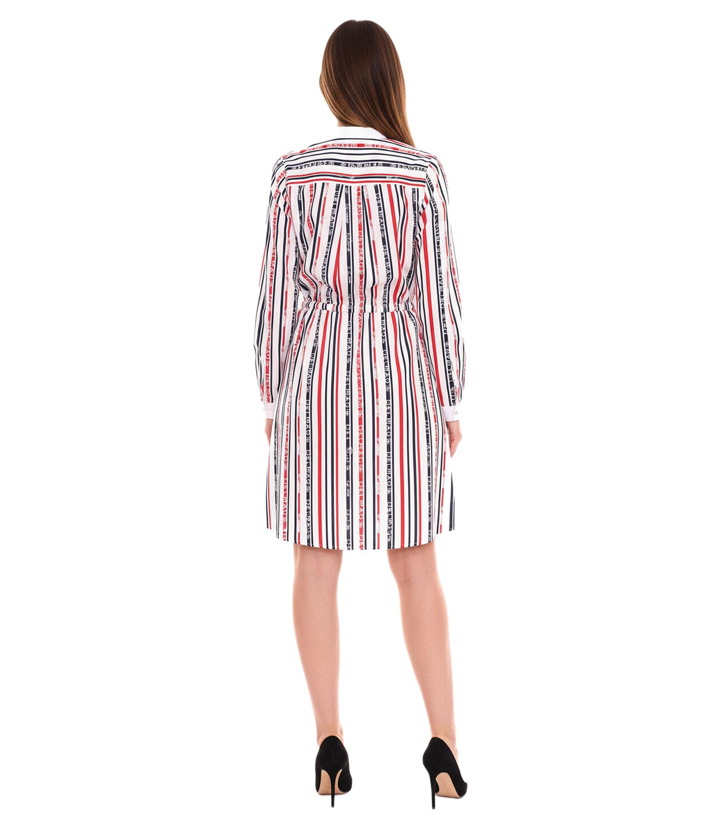 - gestreiftes Blusen-Kleid mit langen Ärmeln