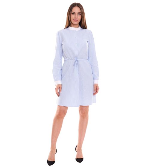 DELMAO Damen Baumwoll-Kleid Mini-Kleid gestreiftes Langarm-Kleid Blusen-Kleid 63983442 Weiß/Blau