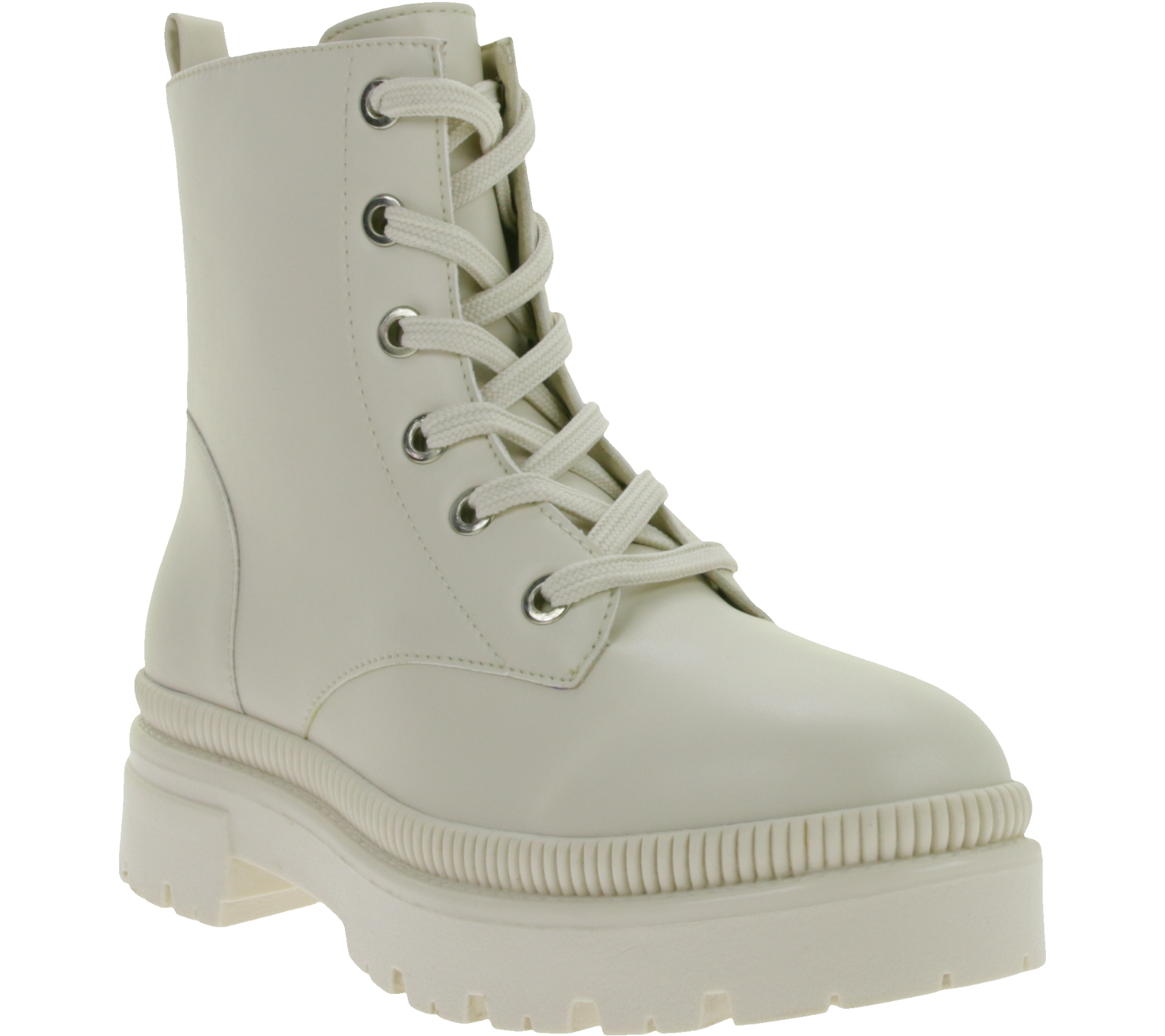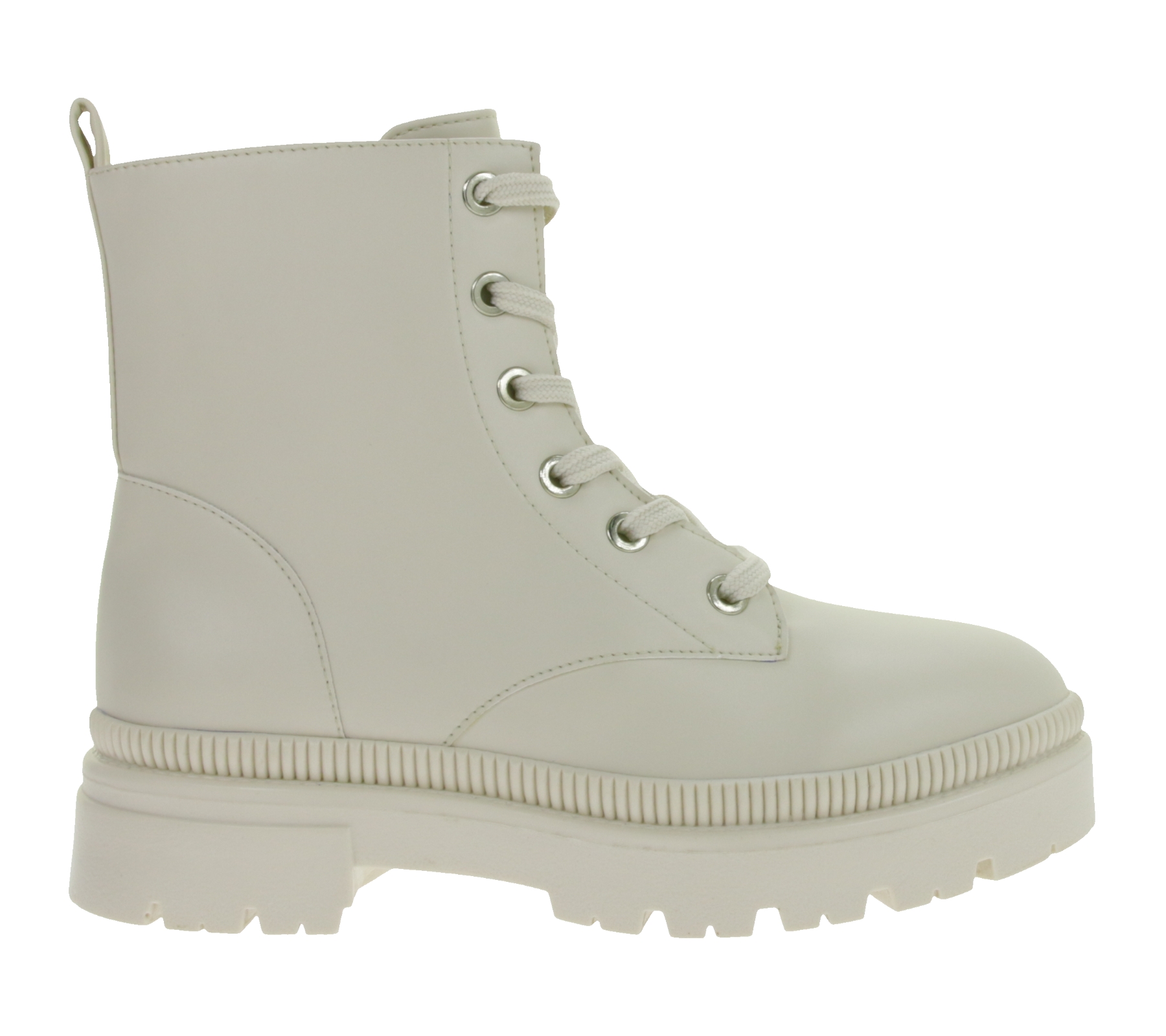 derbe Damen Winter-Stiefel Combat-Boots mit kleinem Plateau Schnür-Stiefelette 930964 Beige
