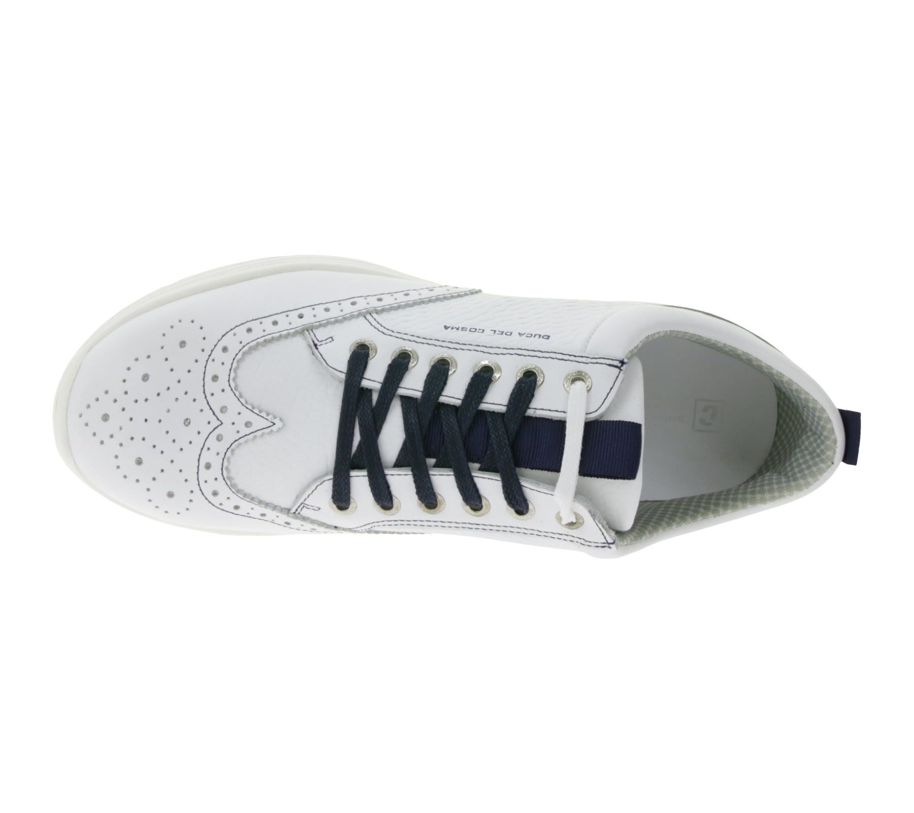 Der Duca del Cosma Heritage Weiß/Blau ist ein wasserdichter Herren-Golfschuh mit elegantem Design, hohem Tragekomfort und griffiger Außensohle für sicheren Halt auf dem Platz