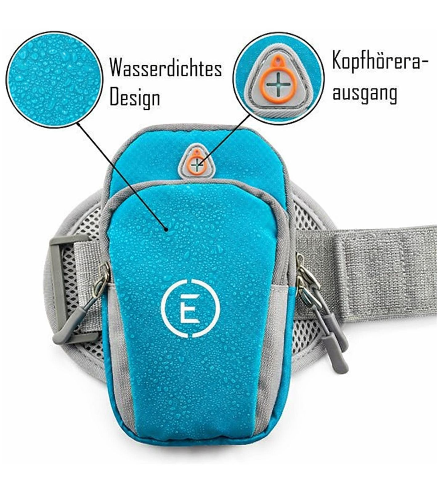 Echelon Lime Sportarmband-Tasche fürs Handy mit Kopfhöreröffnung Jogging-Armband Handy-Hülle 30cm Armumfang Blau
