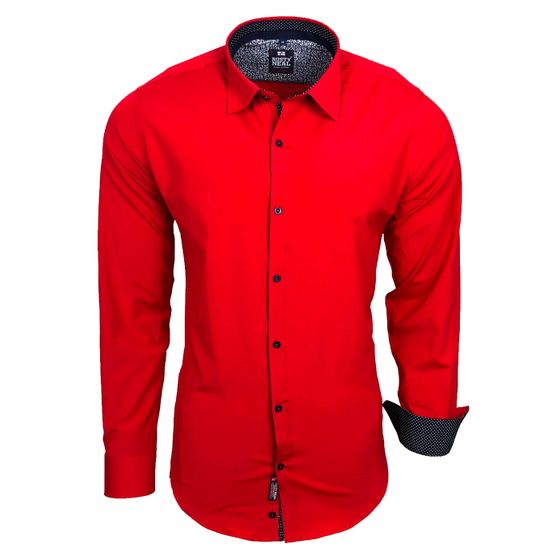 Elegantes Ausgeh-Hemd für Herren Langarm-Shirt Business-Hemd 75 Rot
