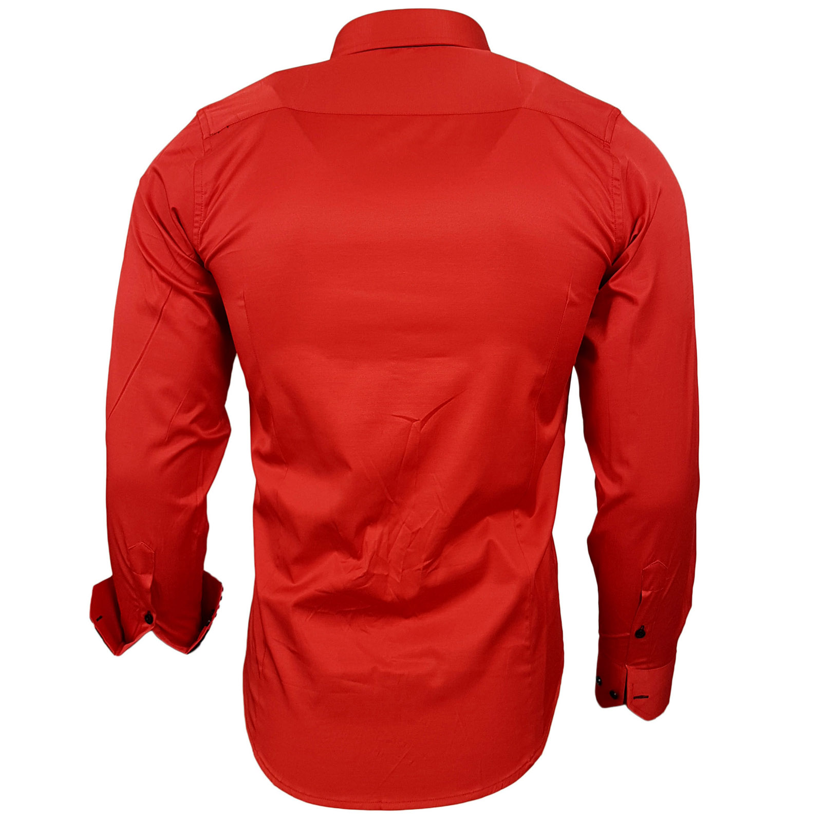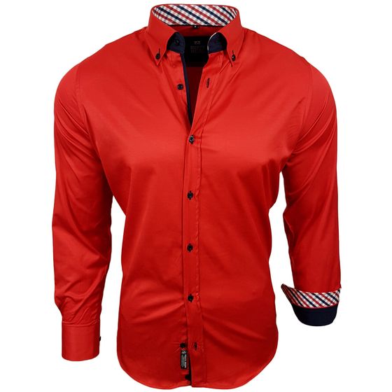 Elegantes Button-Down-Hemd für Herren Business-Shirt Langarm-Hemd 11018 Rot