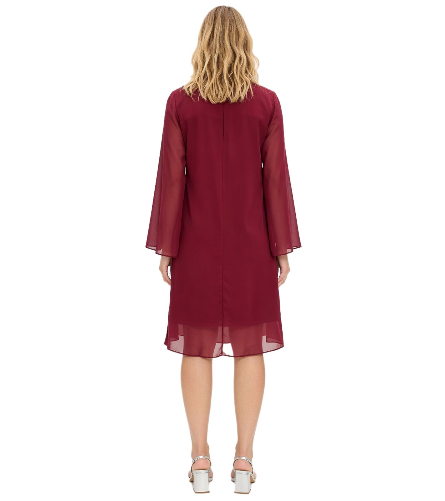 elegantes Damen Abend-Kleid Chiffon-Kleid mit 3/4-Ärmeln Cocktail-Kleid 935924 Bordeaux-Rot