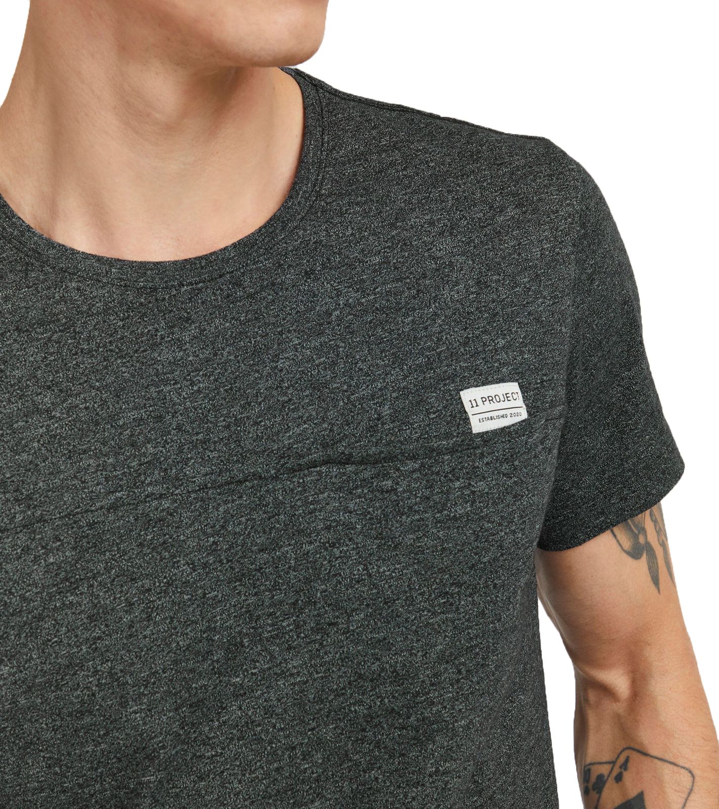 11 PROJECT Santo Men's Cotton T-Shirt, Heathered Summer Shirt with Chest Pocket 20715236 ME 194007 Black
