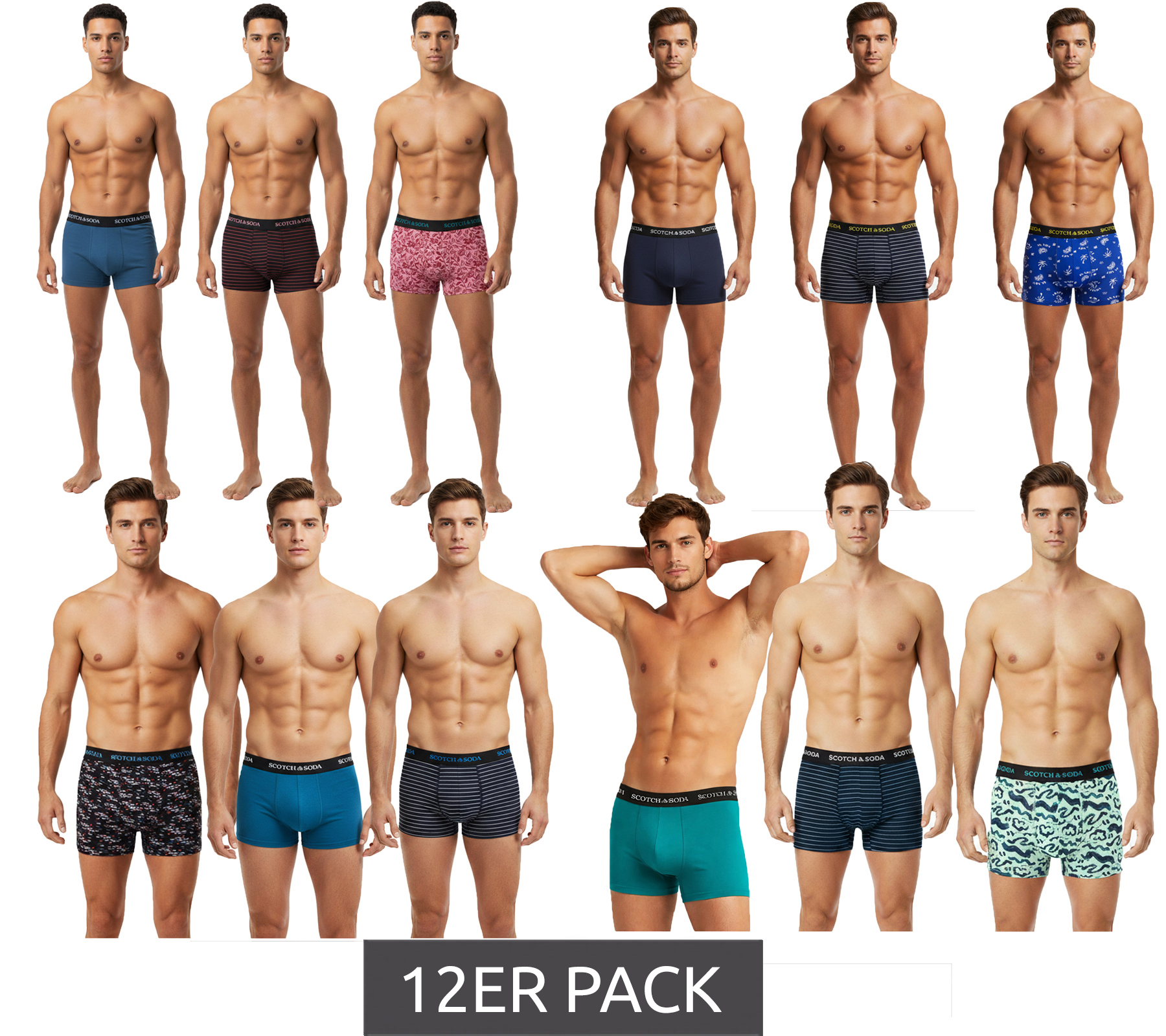 12-Pack SCOTCH & SODA Men's Boxer Shorts with Cotton Stretch Underwear SSSP25M166645 Blue, Multicolor, Black, Red