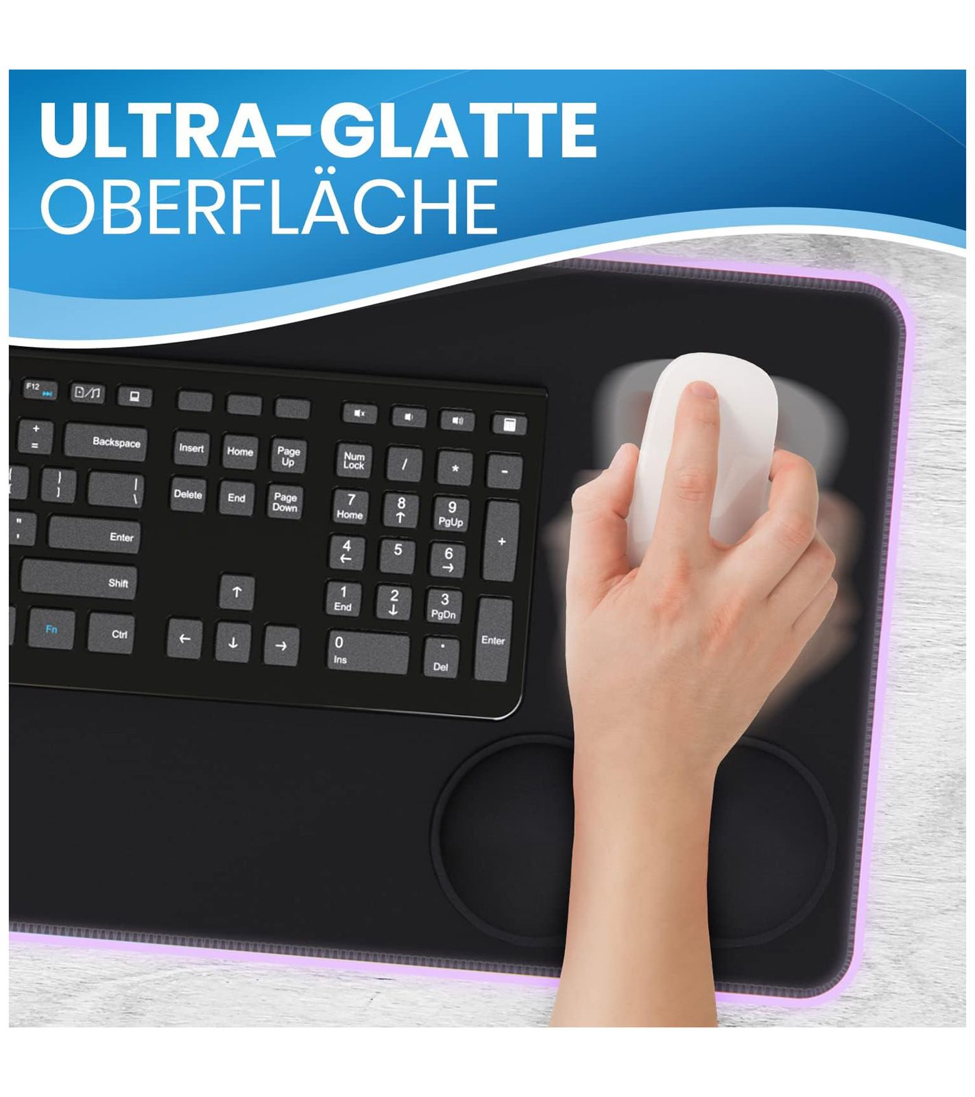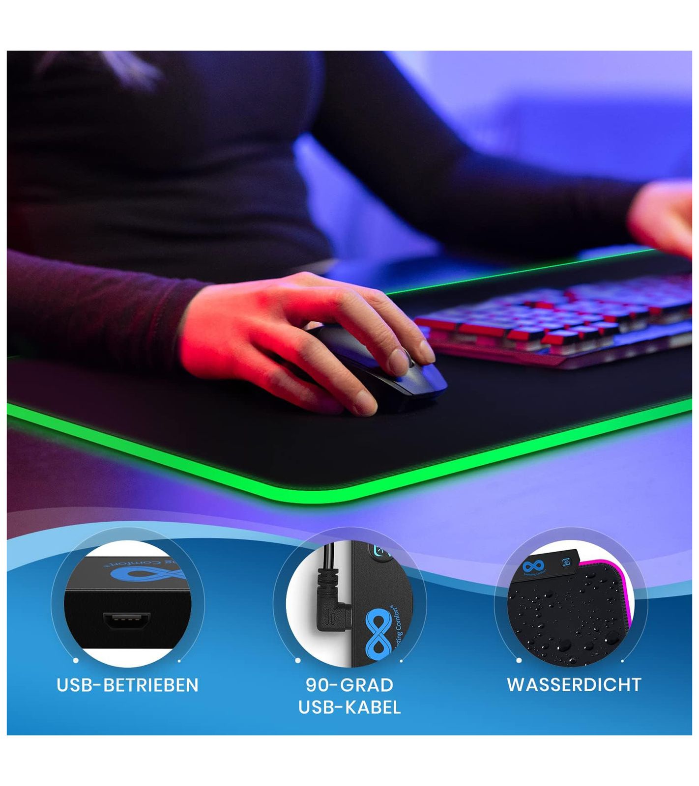 The breathable, micro-textured surface of the LED mouse pad is water-resistant, making spills easy to wipe up.