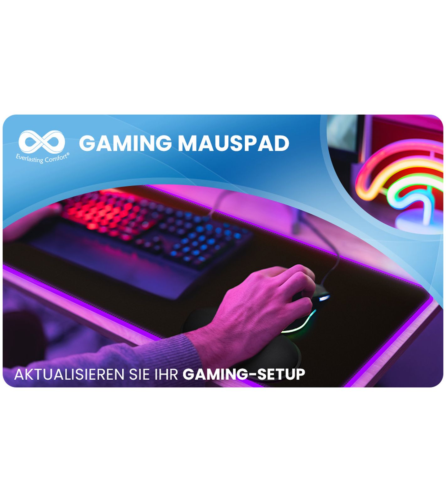 2-Pack Everlasting Comfort RGB Mouse Pad Gaming Mat with LED Lighting, Wrist Rest, and Color-Changing Modes, Large Mouse Pad 80x30cm, Gaming Accessory, Black