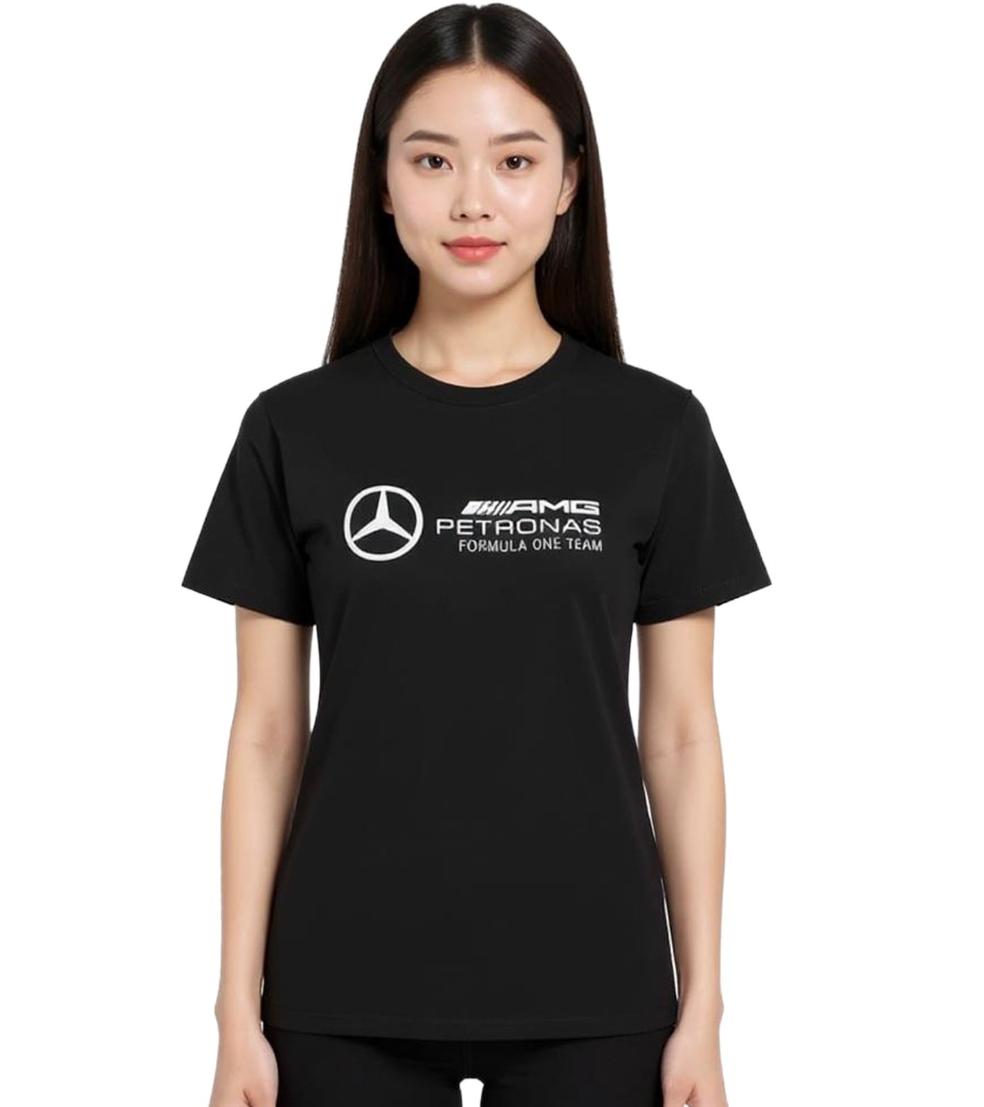 2-Pack Mercedes-Benz AMG Petronas F1 MAPF Women's T-Shirt, Cotton Shirt with Large Logo, Short-Sleeve Shirt, Value Pack 701227045 001 Black