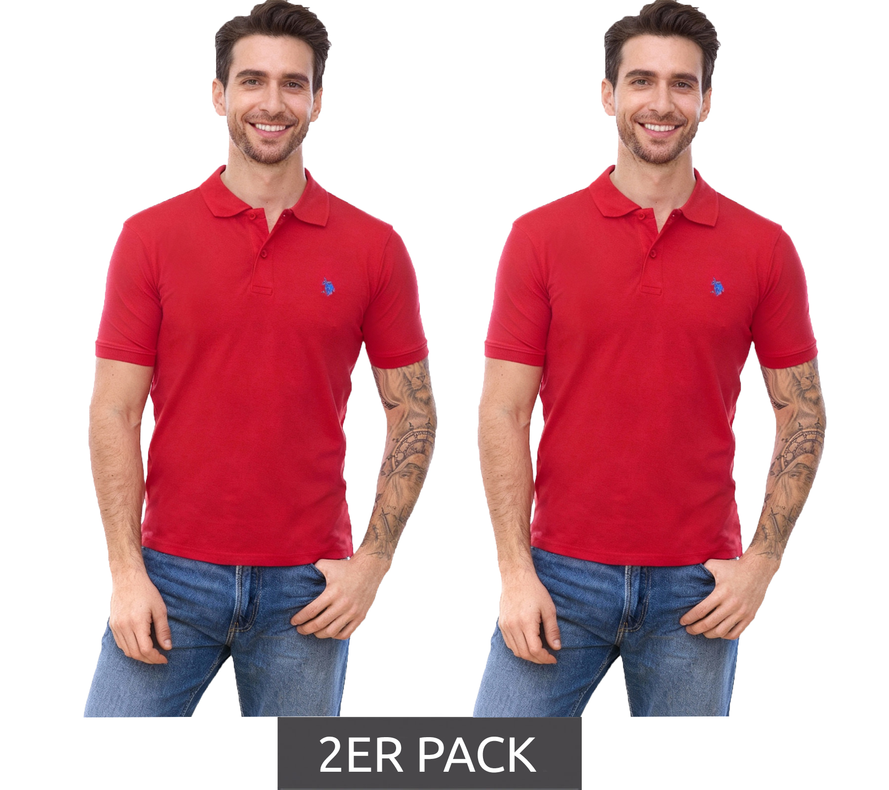 2-Pack Value Pack U.S. POLO ASSN. Men's Polo Shirt Basic Shirt Cotton Short Sleeve Shirt 197 61092 52520 155 Red/Blue
