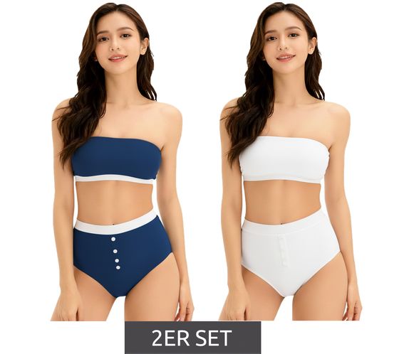 2-Pack Women's Bandeau Bras, Strapless, Organic Cotton, Wire-Free, 948684 Blue/White