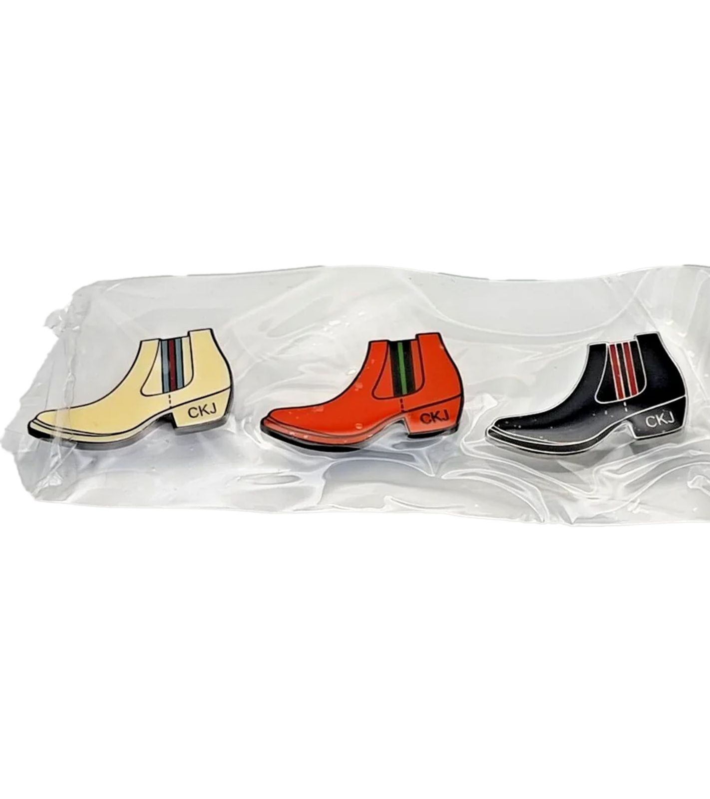 3-Pack Calvin Klein Unisex Boat-Design Pin-Up Brooches, Stainless Steel, KJJNDH300100, Black/Orange/Beige
