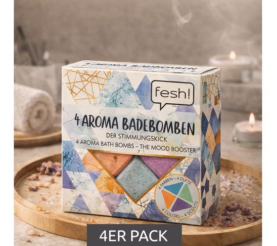 4-Pack fesh! Aroma Bath Bombs in Four Different Colors and Scents - Sustainable Bath Accessories - Wellness Blue/Purple/Orange/Yellow