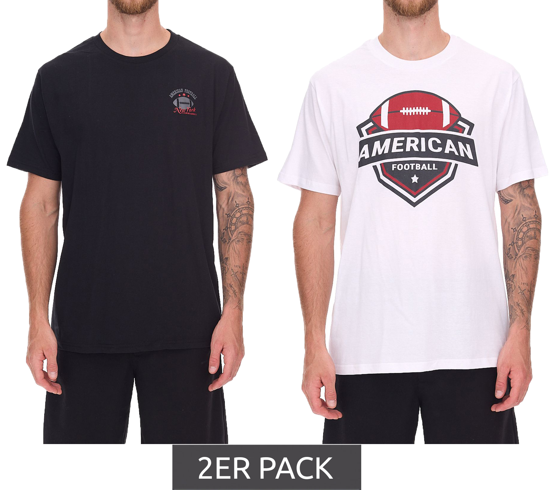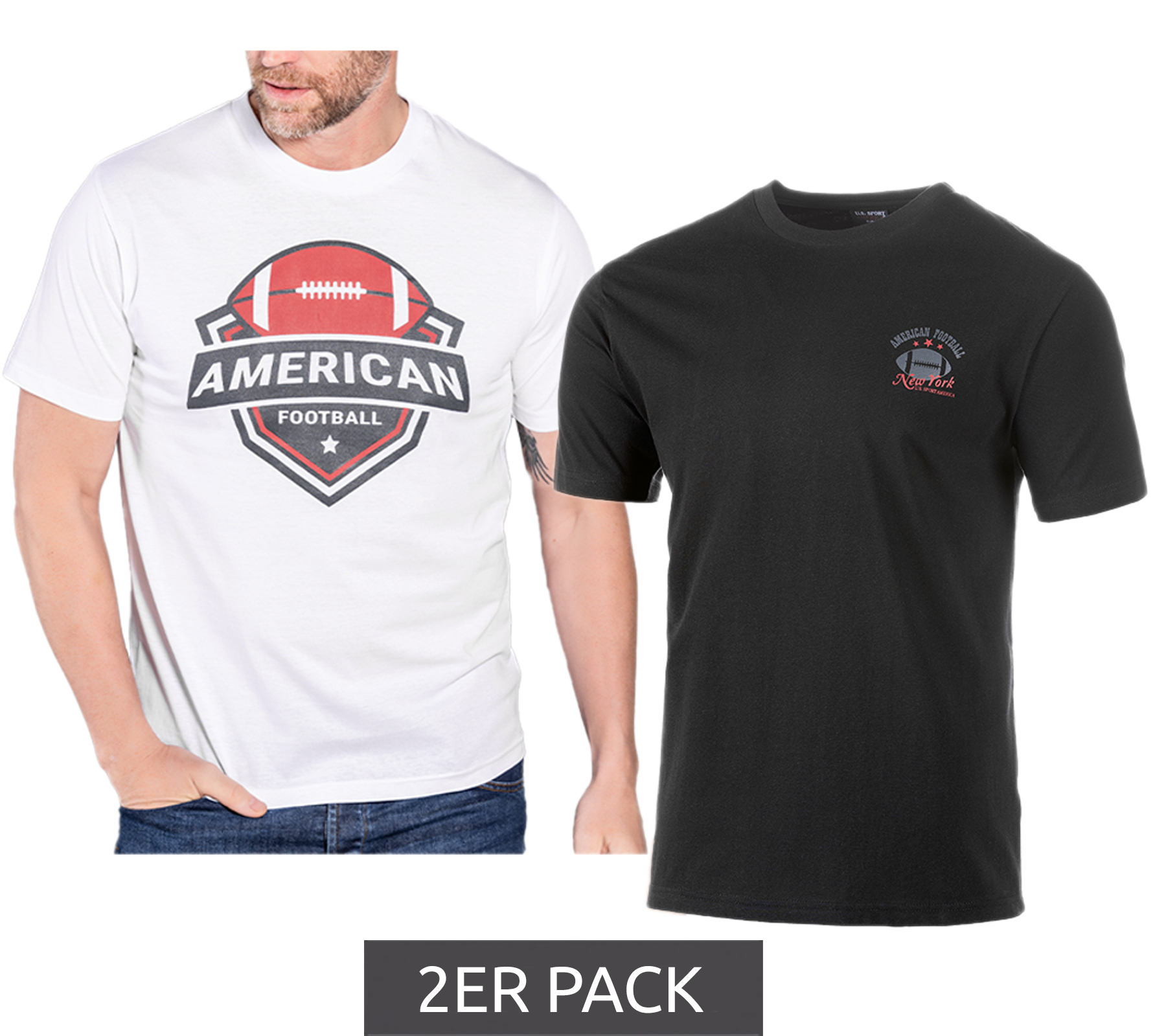 2-Pack U.S. SPORT AMERICA Men's Basic Cotton T-Shirt, Crew Neck, Short Sleeve, Black/White