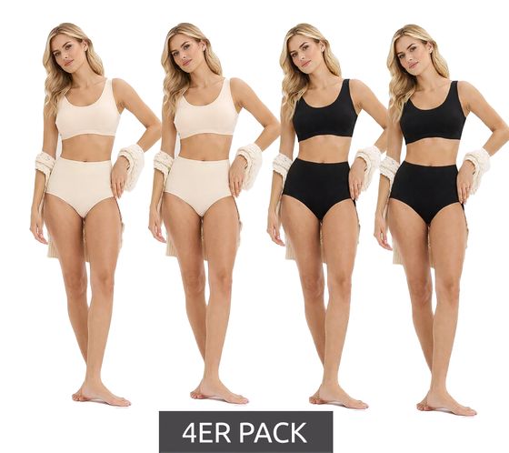 Package includes: 4 high-waisted briefs – 2 in black, 2 in beige