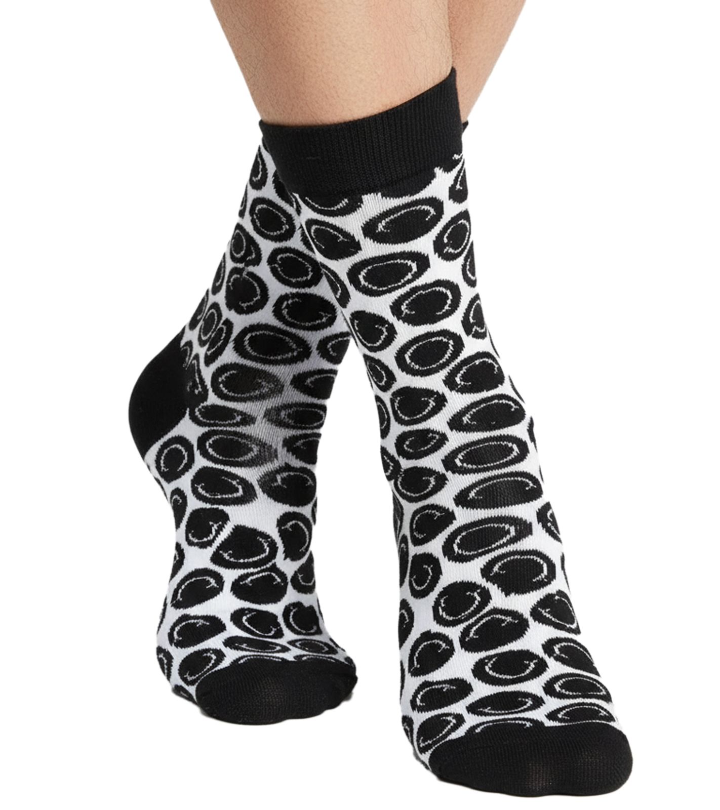 4 Pairs of Happy Black & White Men's Cotton Socks, Everyday Socks in Gift Box XBLW09-9300 Black/White