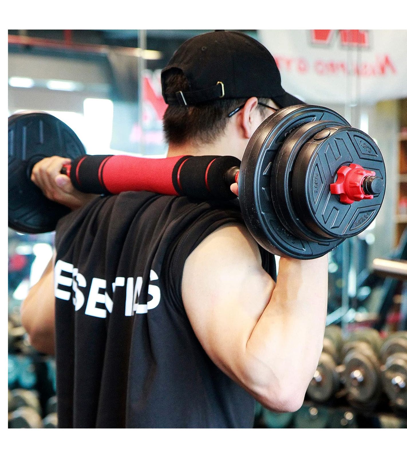 Adjustable ZERRO SPORT Dumbbell Set with Connecting Steel Tube, Long Barbells, Dumbbell Fitness Accessory, 20kg, Black/Red