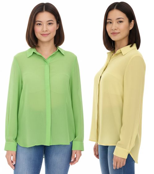 Aniston SELECTED Women's Summer Blouse, Long-Sleeved Shirt with Kent Collar, Summer Basic Blouse, Yellow or Green