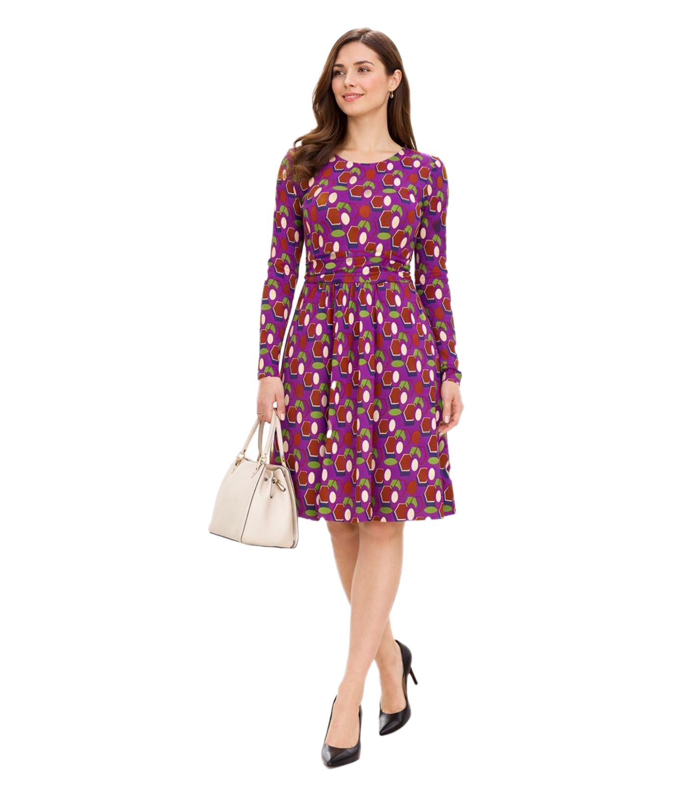 Aniston SELECTED Women's Summer Dress Midi Dress with Geometric Patterns Holiday Dress 39733762 Purple/Brown/Green