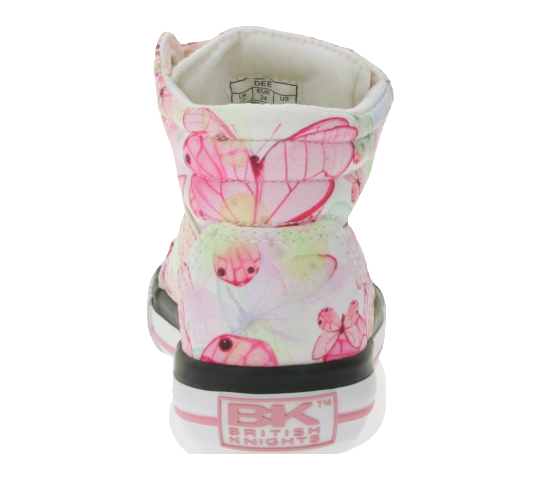 BRITISH KNIGHTS Dee Toddler Mid-Top Sneakers with Butterflies, Girls' Lace-Up Shoes with Reinforced Toe B49-3734I-01 White/Pink/Multicolor