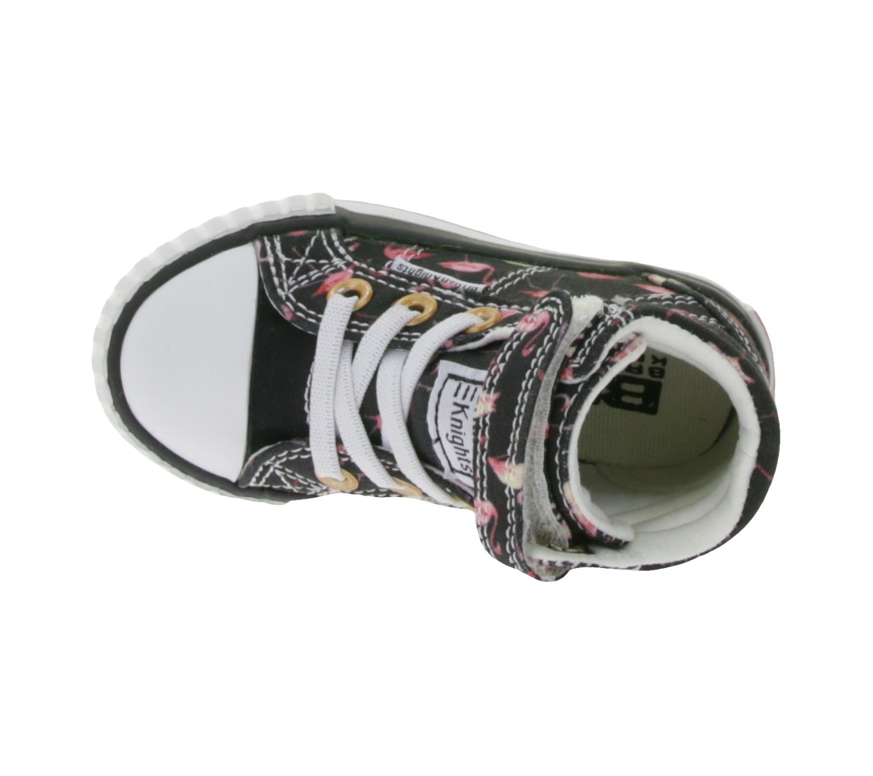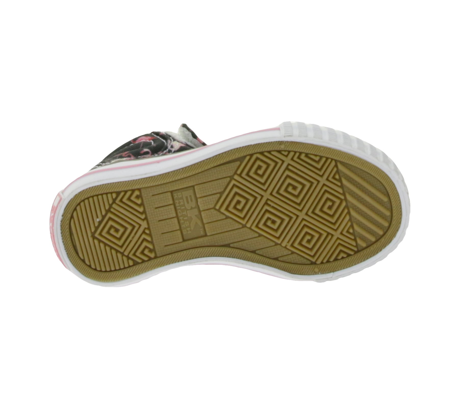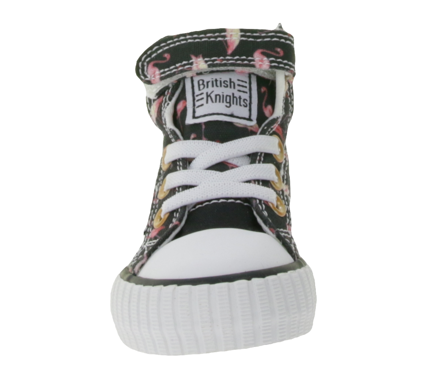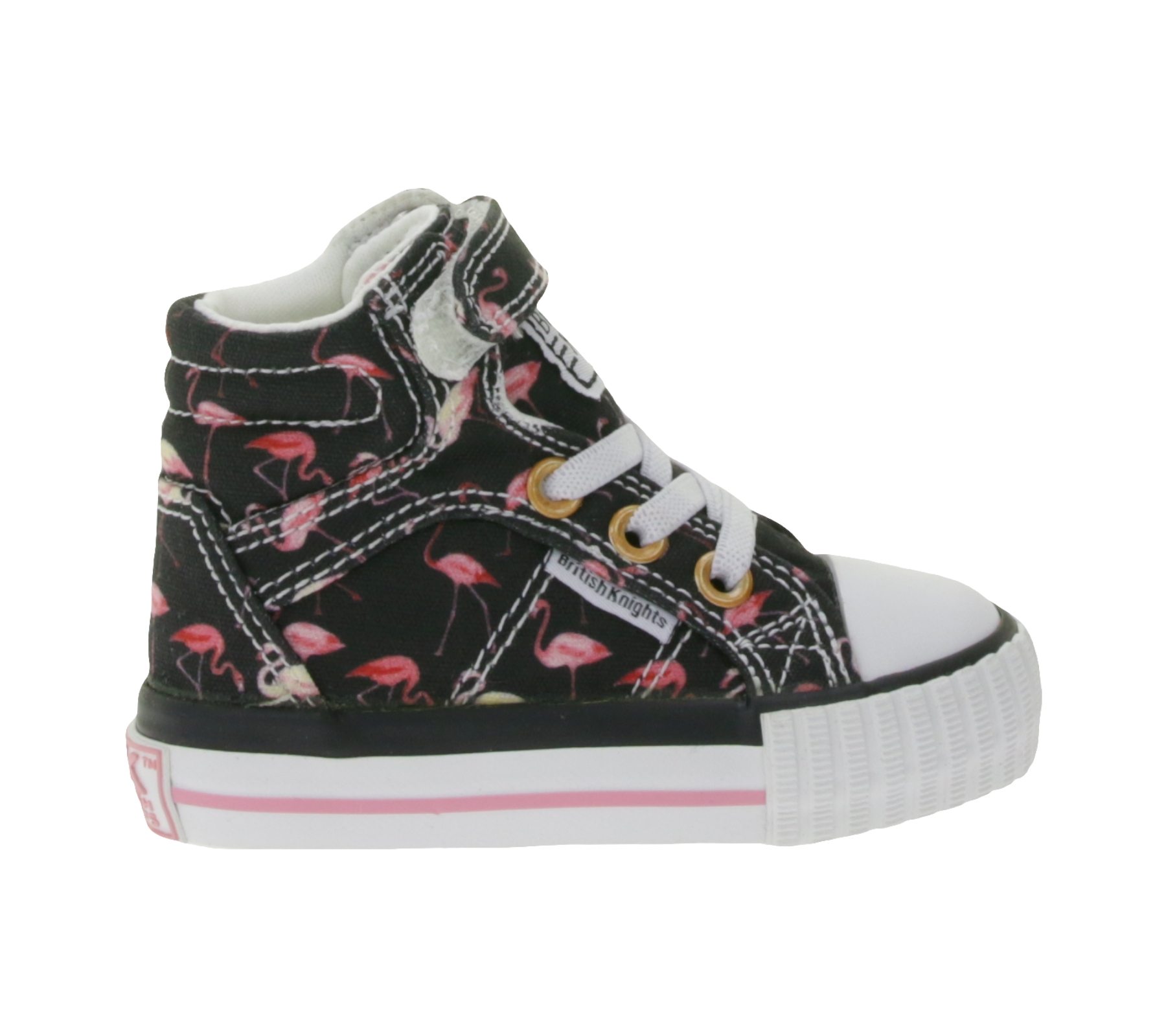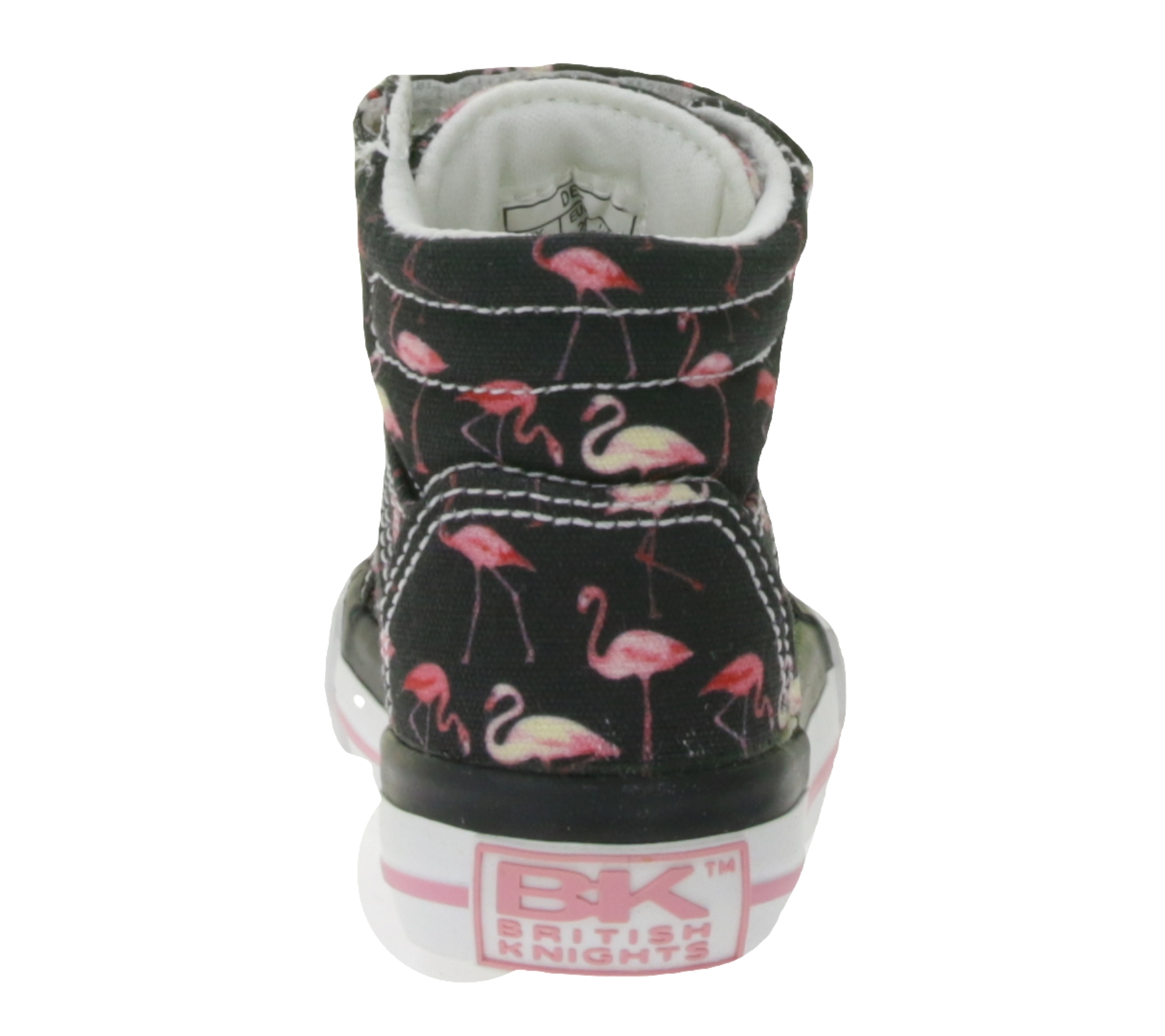 BRITISH KNIGHTS Dee Toddler Mid-Top Sneakers with Flamingos, Girls' Lace-Up Shoes with Reinforced Toe, B49-3733I-01, Black/Pink/White