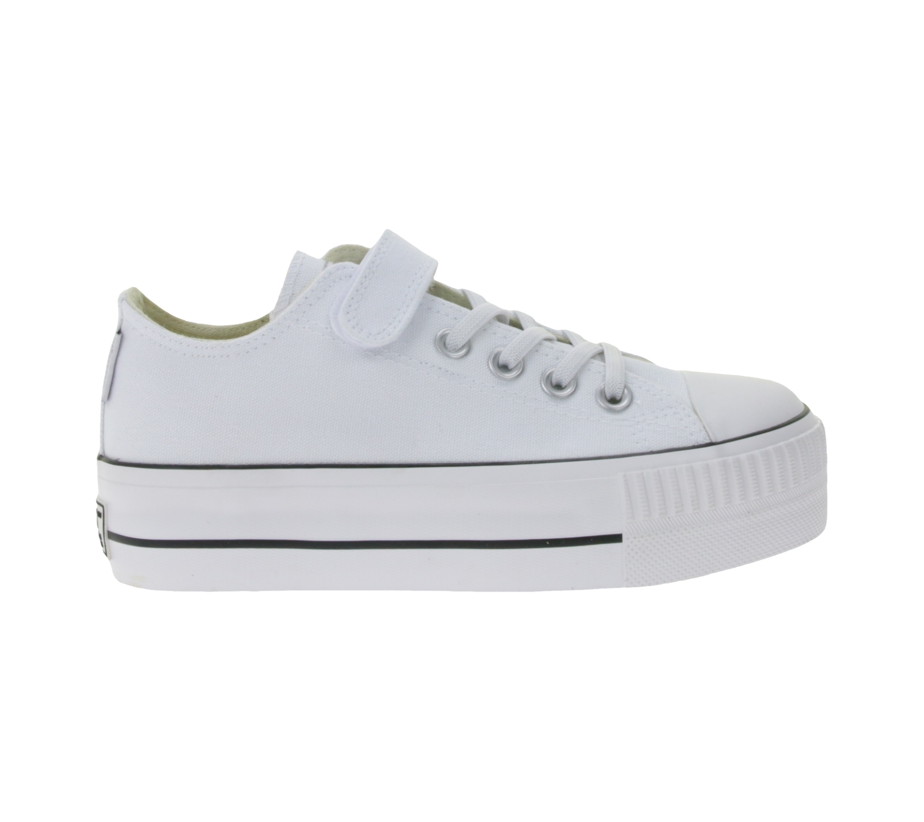 BRITISH KNIGHTS Kaya Low Kids' Low-Top Canvas Sneakers with Reinforced Toe and Platform Lace-Up Shoes B49-3705C-01 White