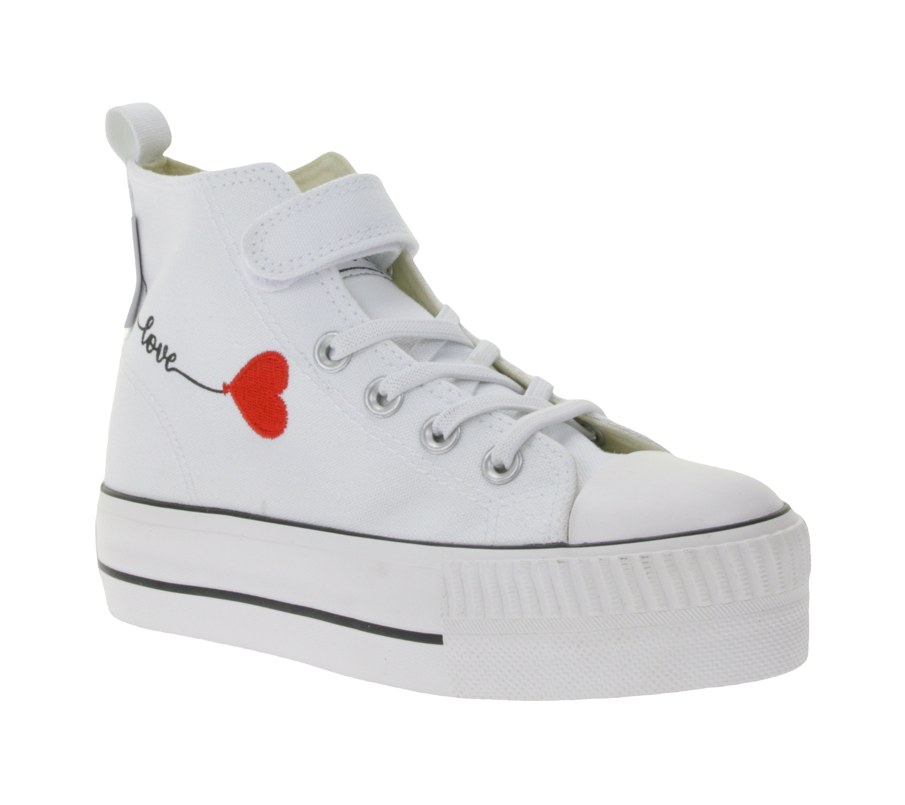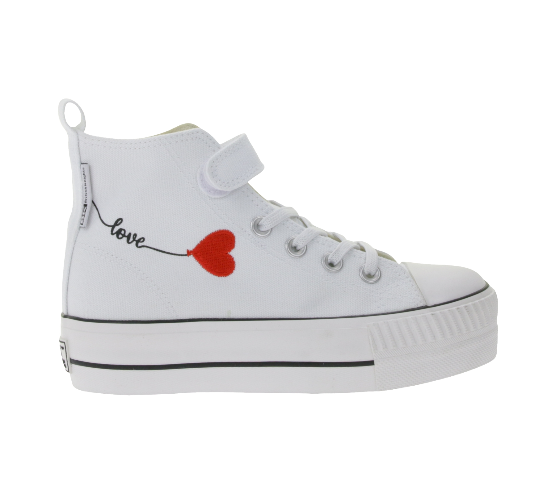 BRITISH KNIGHTS Kaya Mid Kids' Mid-Top Canvas Sneakers with Decorative Heart Embroidery & Love Print Lace-Up Shoes for Teen Girls B49-3710C-02 White