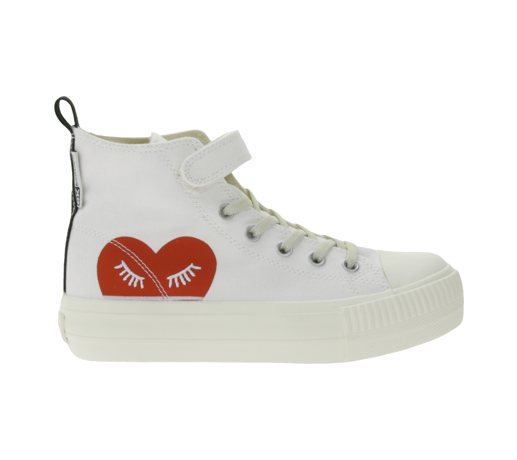 BRITISH KNIGHTS Kaya Mid Kids' Mid-Top Canvas Sneakers with Decorative Heart Print Lace-Up Shoes for Teen Girls B52-3705C-03 Cream White