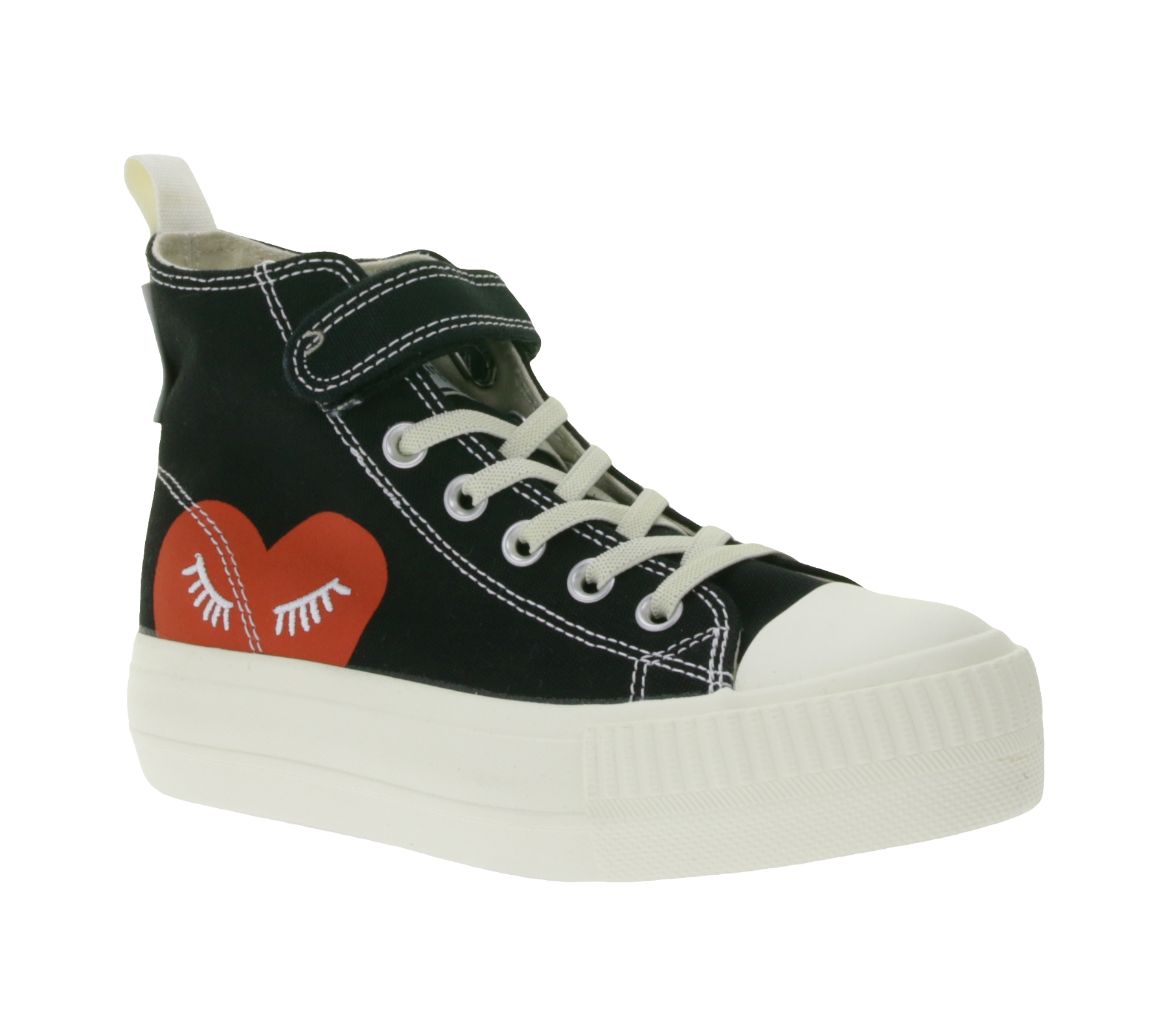 BRITISH KNIGHTS Kaya Mid Kids Mid-Top Canvas Sneakers with Decorative Heart Print Lace-Up Shoes Teenage Girls B52-3705C-01 Black