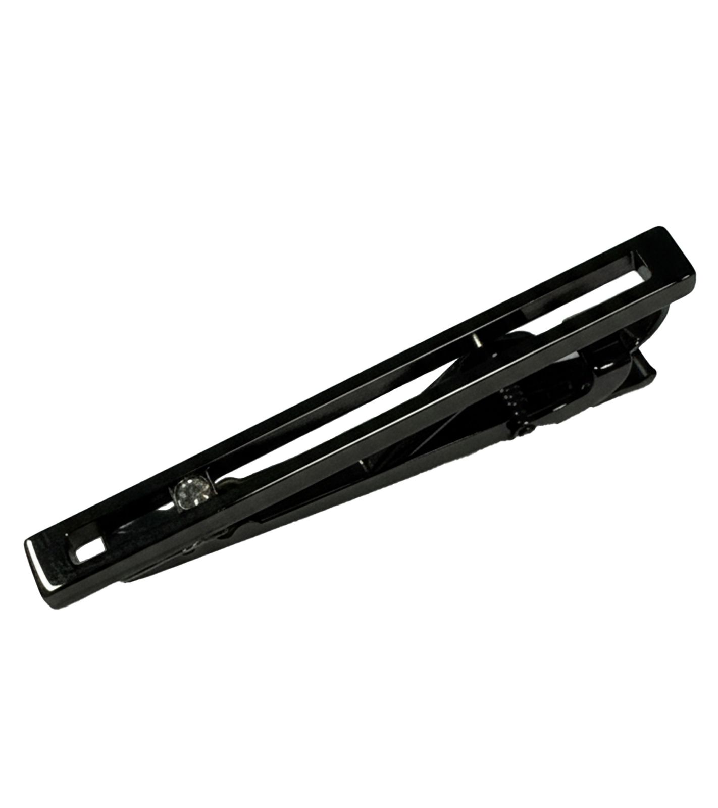 Calvin Klein Tie Clip with a Sparkling Crystal, Stainless Steel KJ7WAT140, Black, with Open or Closed Bar