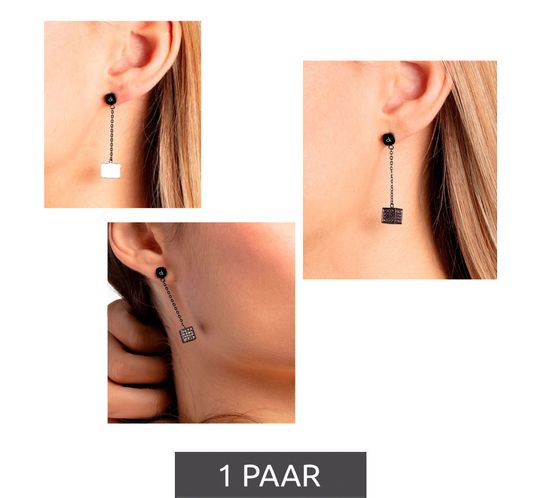 These designer earrings in steel, adorned with Swarovski crystals, underscore the excellent taste and distinctive style of the wearer.