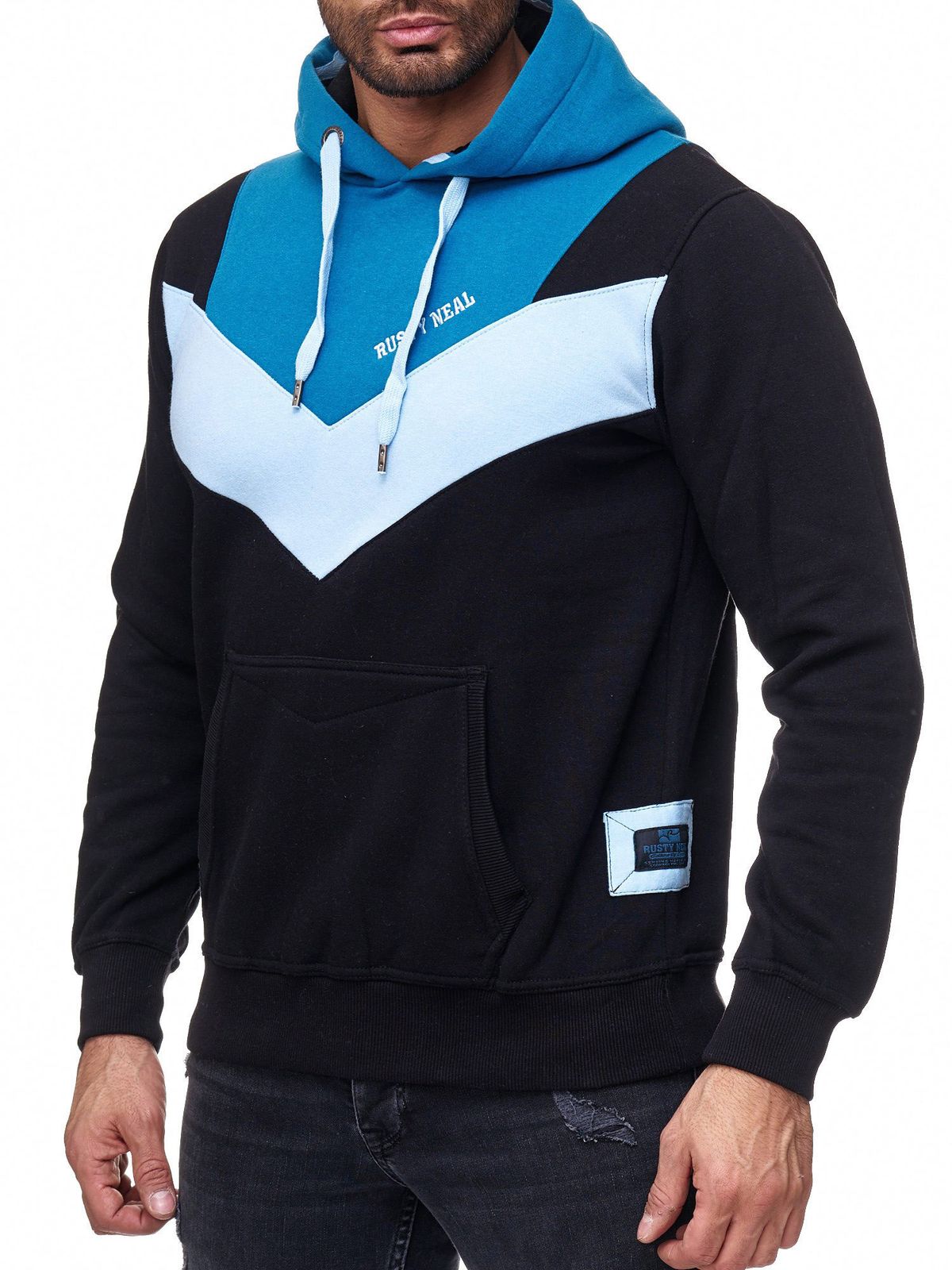 Casual men's colorblock hooded sweatshirt with kangaroo pocket, sweater 19047 Petrol