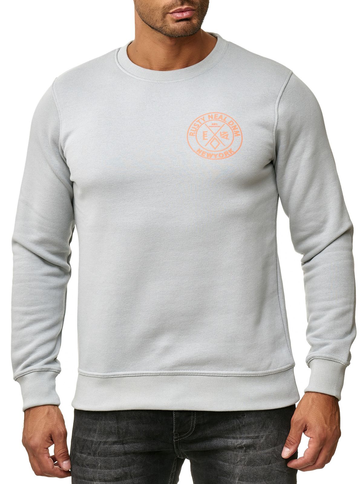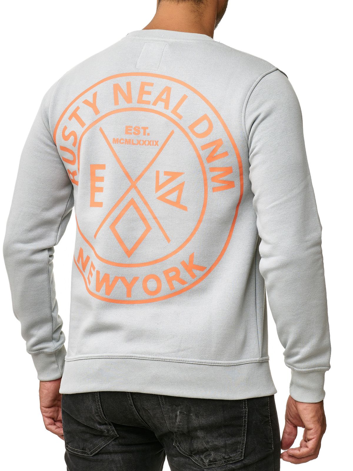 Casual men's crew neck sweater with logo print and large back print, sweater 19103 grey