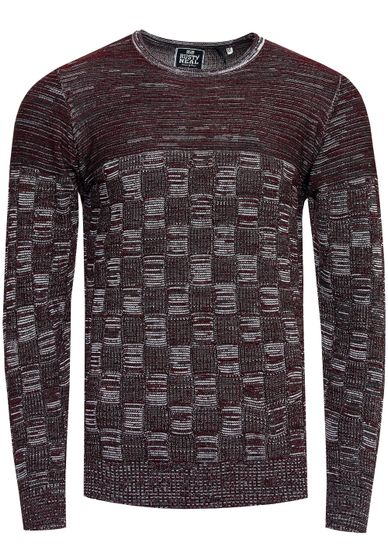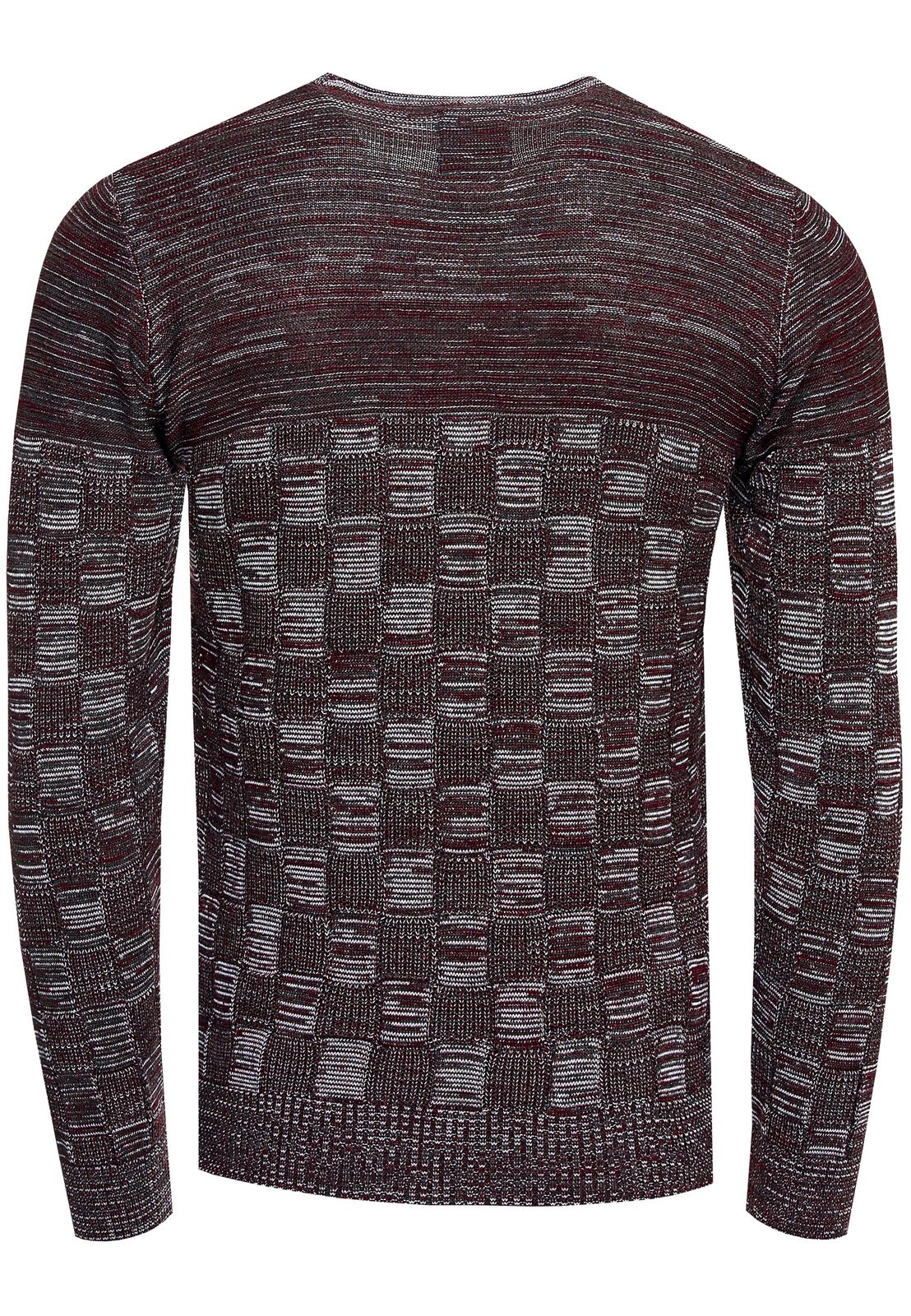 Casual men's fine-knit pullover with check pattern and round neck, slim fit knit sweater 13378 anthracite