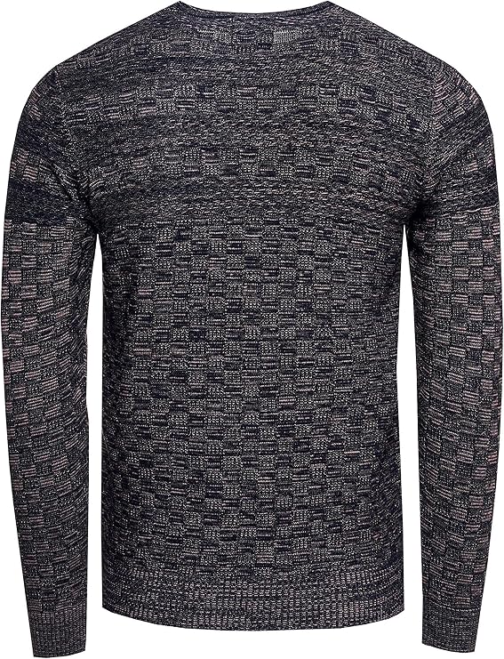 Casual men's fine-knit sweater with textured pattern, crew neck pullover 13375 Navy