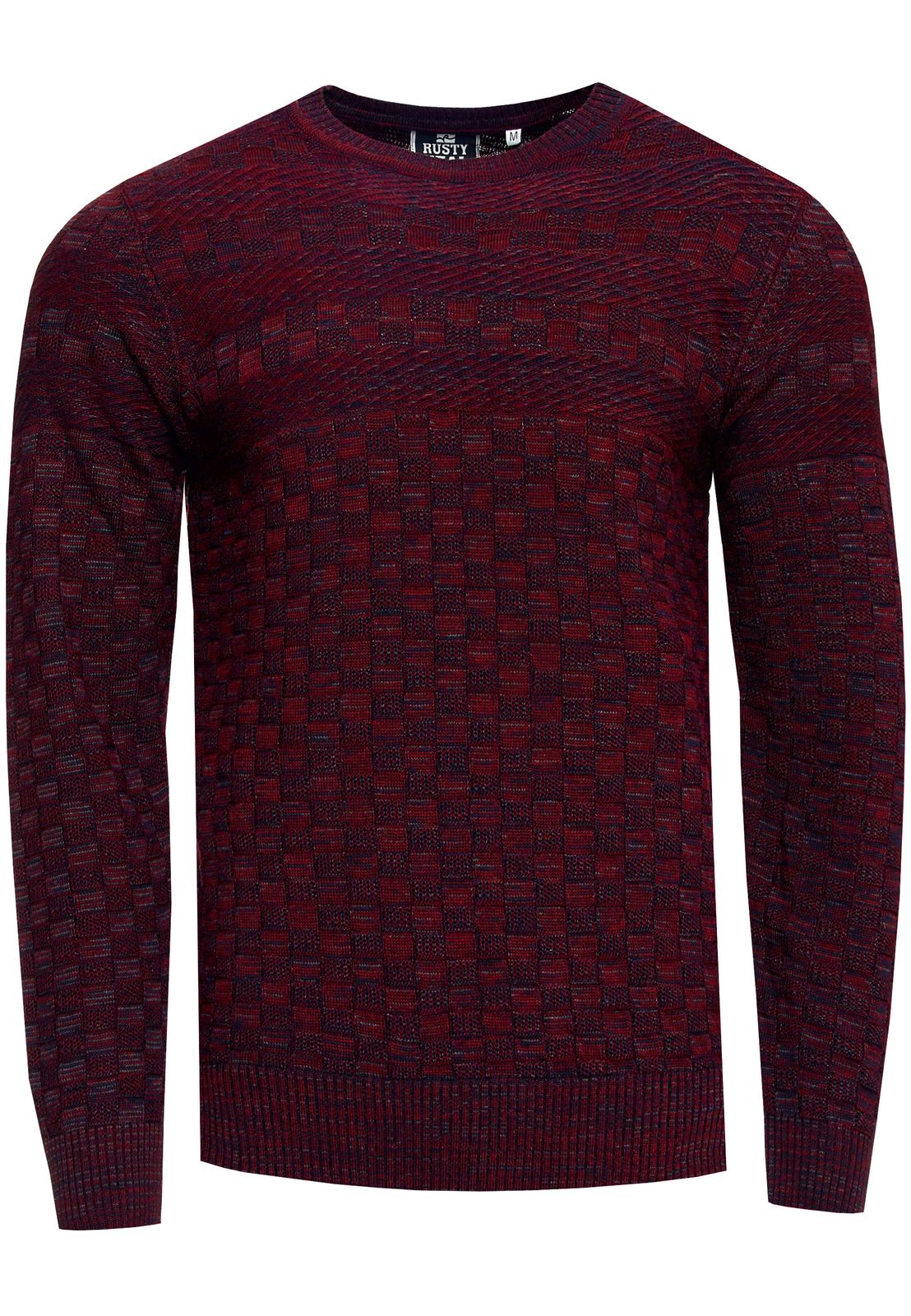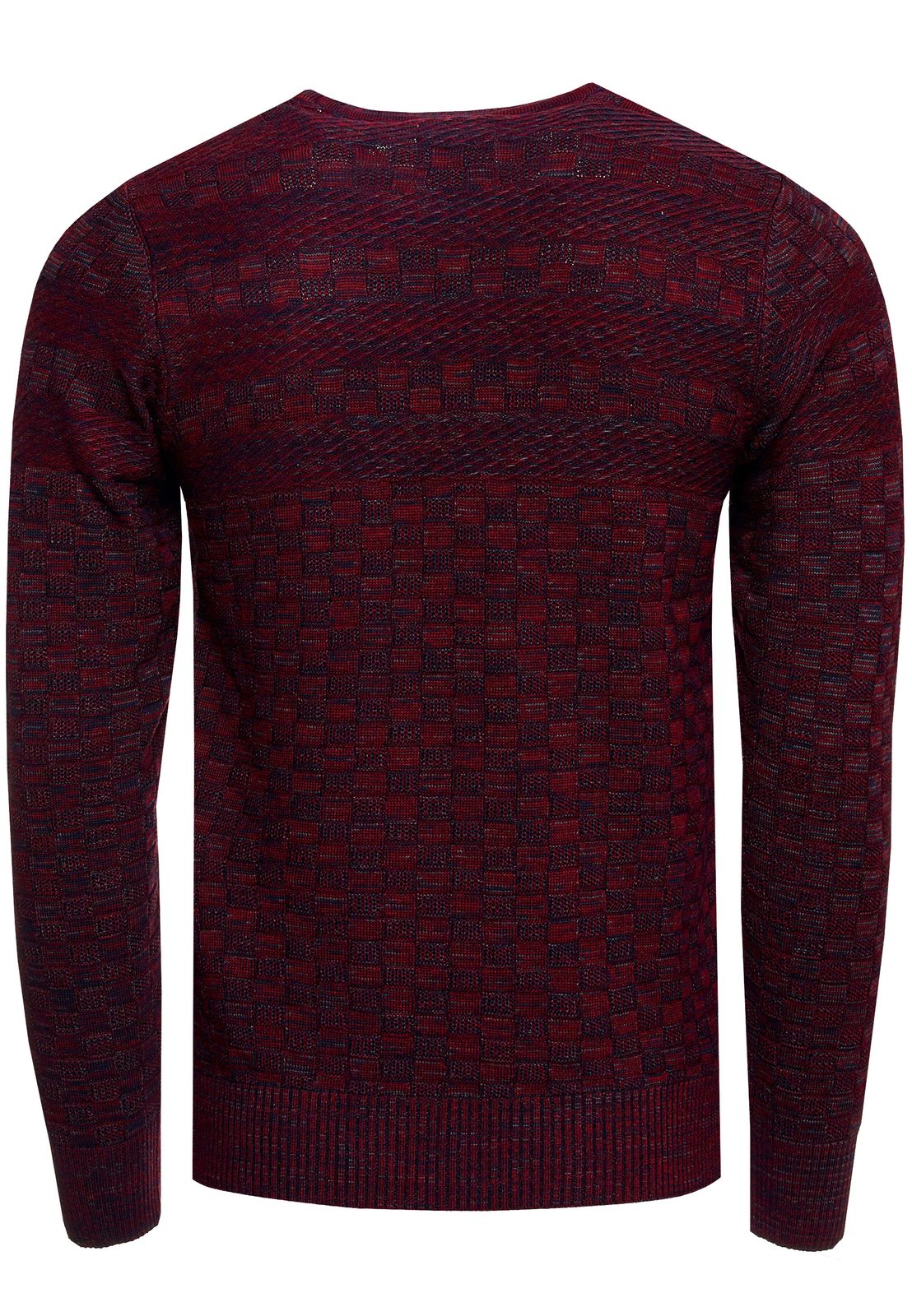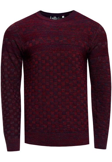 Casual men's fine-knit sweater with textured pattern, crew neck pullover 13375, wine red