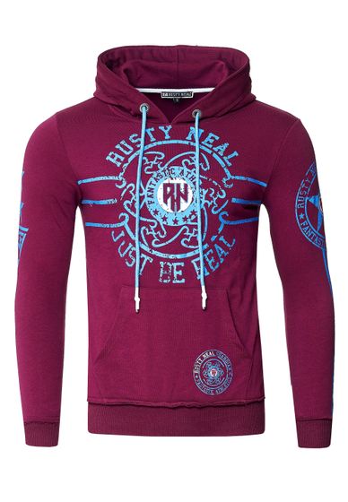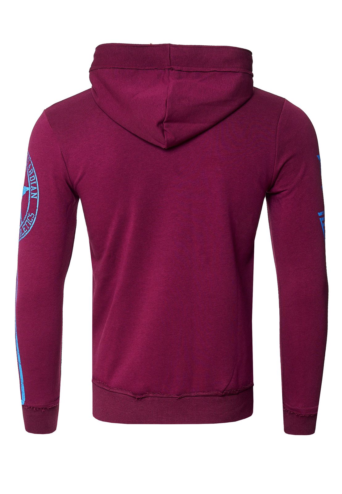 Casual men's hooded sweatshirt with logo print and kangaroo pocket, 19127 Bordeaux