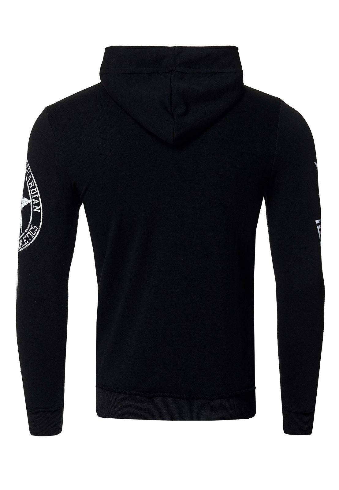 Casual men's hooded sweatshirt with logo print and kangaroo pocket, black, 19127