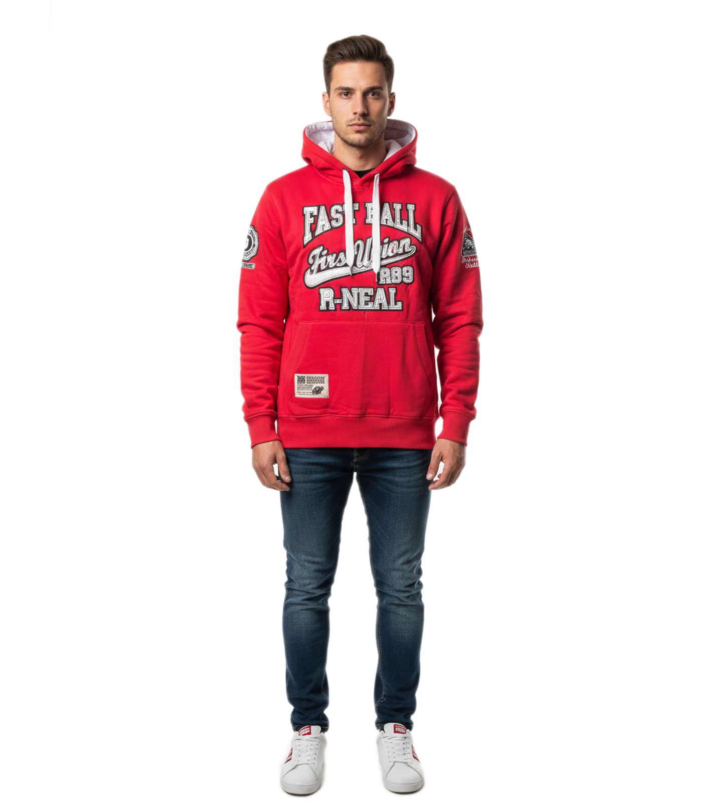 Casual Men's Hoodie with Logo Print and Kangaroo Pocket Sweatshirt 6915-Red