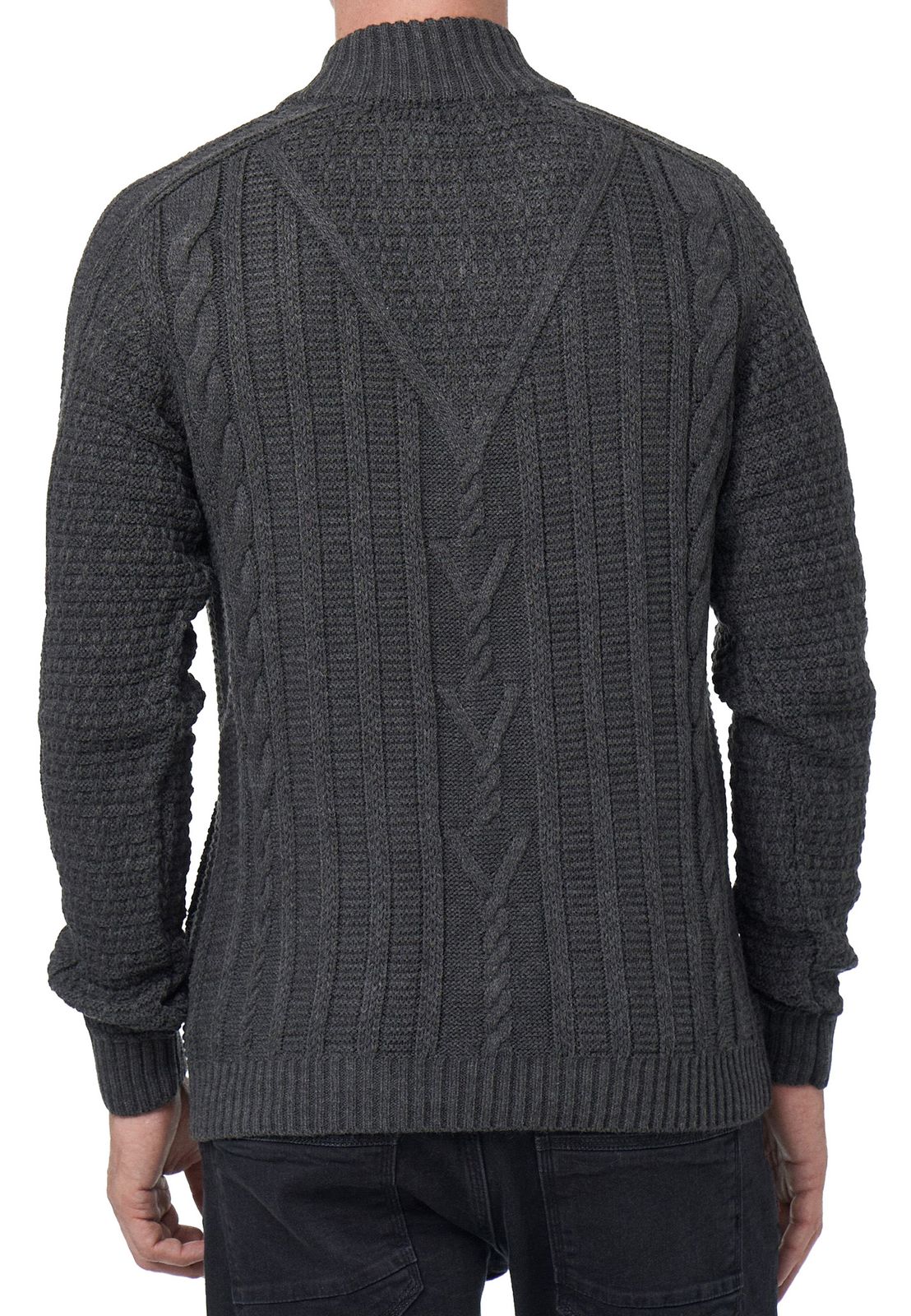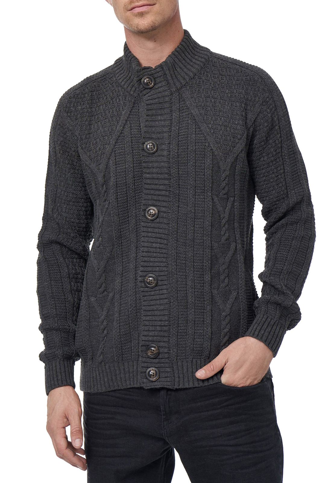 Classic men's chunky knit cardigan with stand-up collar and button placket, textured cardigan 13401 anthracite