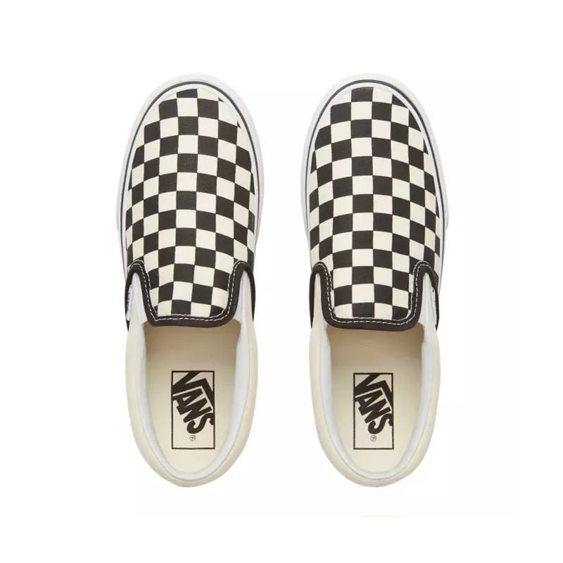 - Technical Features: 100% Textile - 100% Vegan Laceless Closure Durable Canvas Upper Iconic Checkered Print Padded Collar for Better Support Elastic Side Panels Platform, Rubber Embossed Outsole