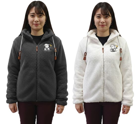 Comfortable sheepworld women's teddy fleece jacket with embroidered design. Cozy jacket with stand-up collar. Sweatshirt jacket in white or gray.