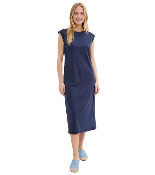 Comfortable Women's Maxi Dress, Cotton Dress with Short Sleeves and Slit, 934764 Dark Blue