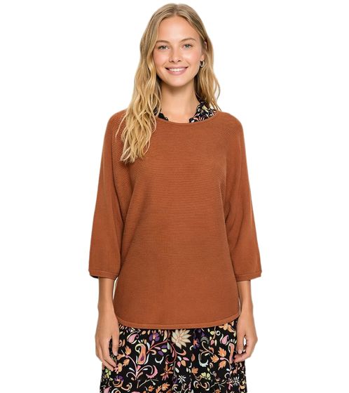 Comfortable Women's Oversized Ribbed Knit Sweater with 3/4 Sleeves 964101 Brown