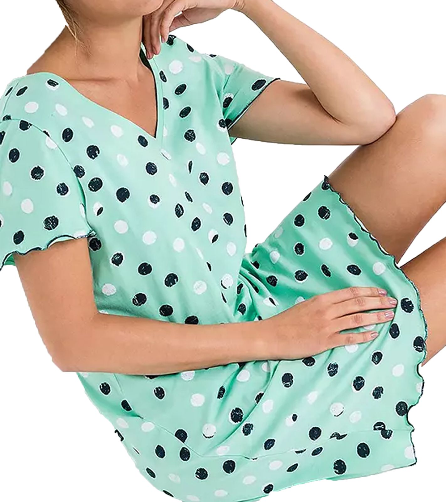 Comfortable Women's Polka Dot Nightdress with V-Neck, Organic Cotton Dress 960539 Blue/Green