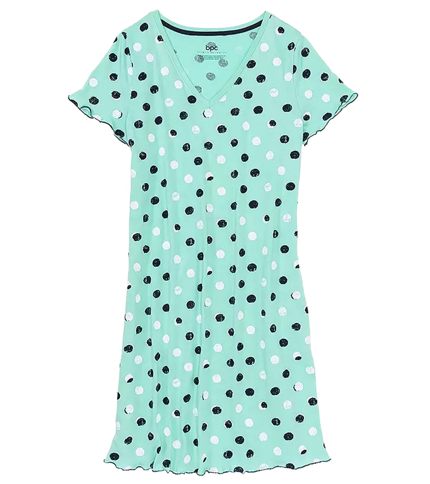 This comfortable nightdress features an attractive rounded V-neck and short sleeves.