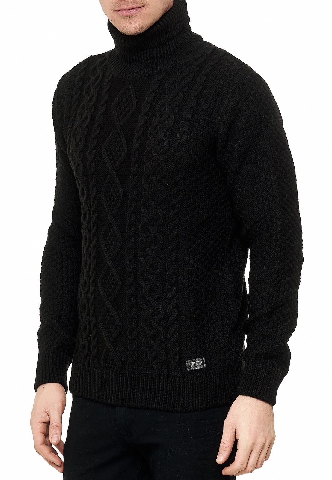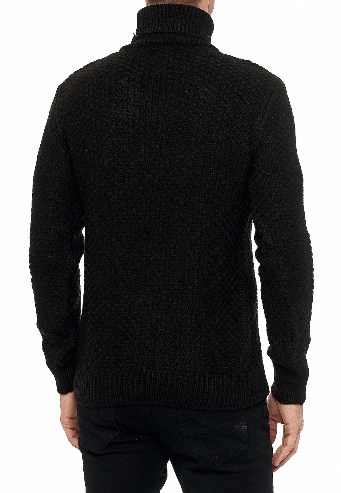 Cool men's chunky knit roll-neck sweater with incorporated pattern, sweater 13348, black