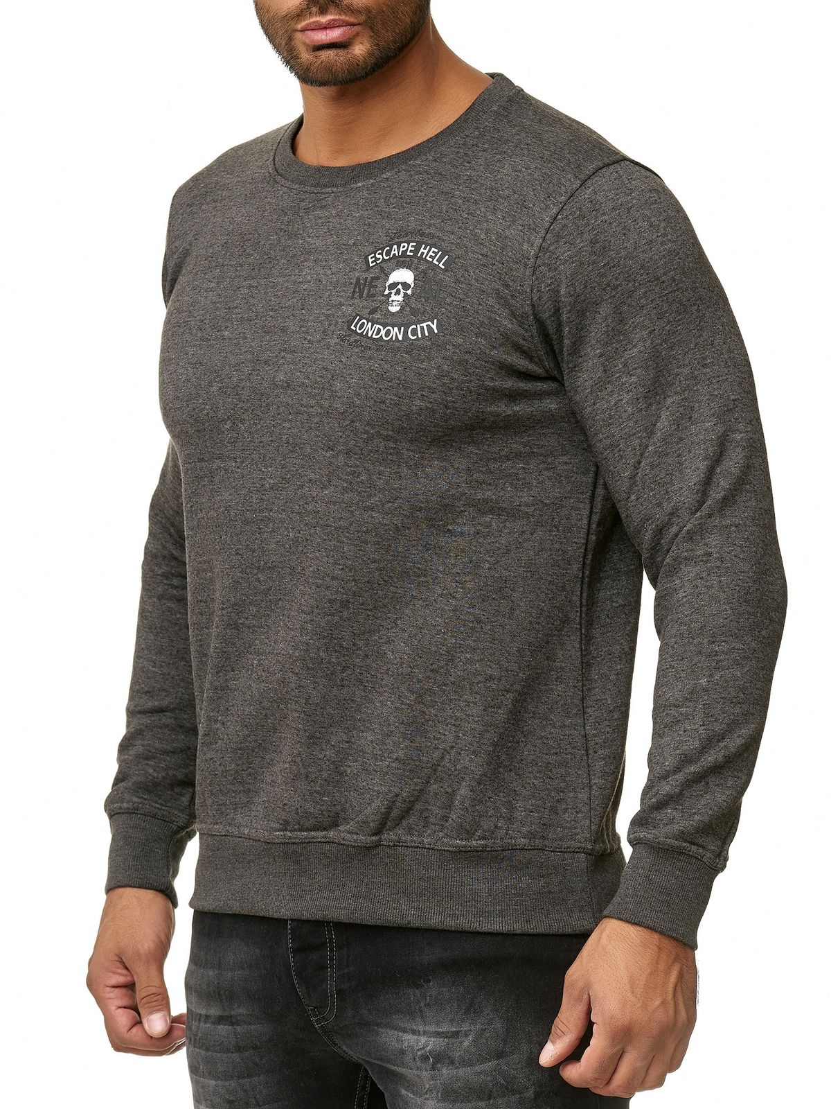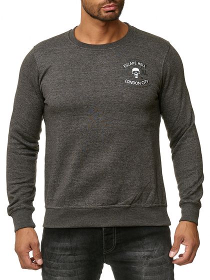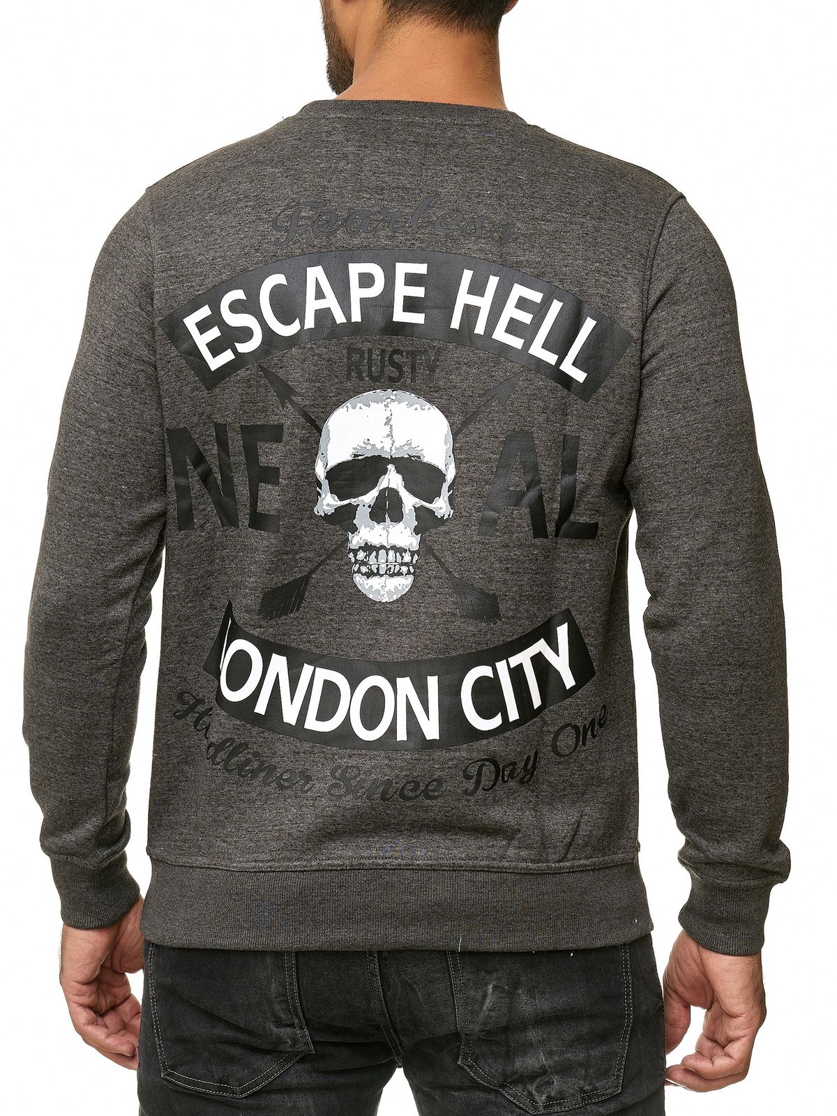 Cool men's crew neck sweater with skull print and large back print, sweater 19104 anthracite