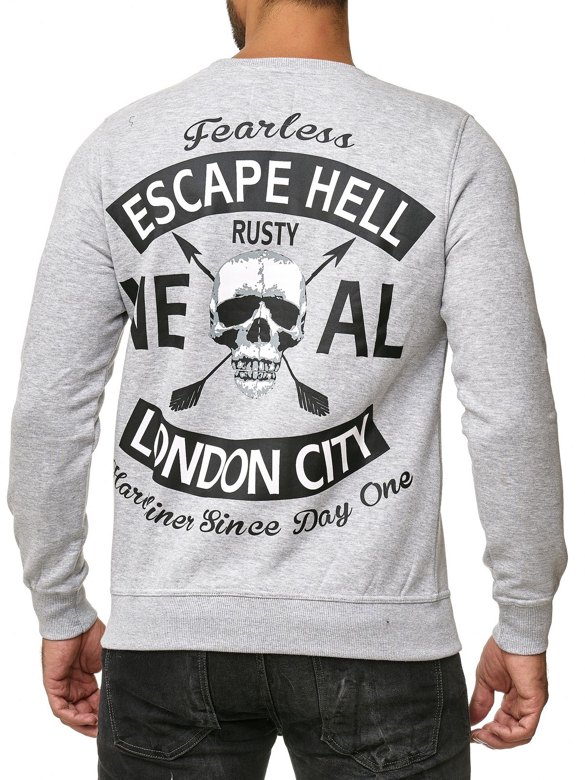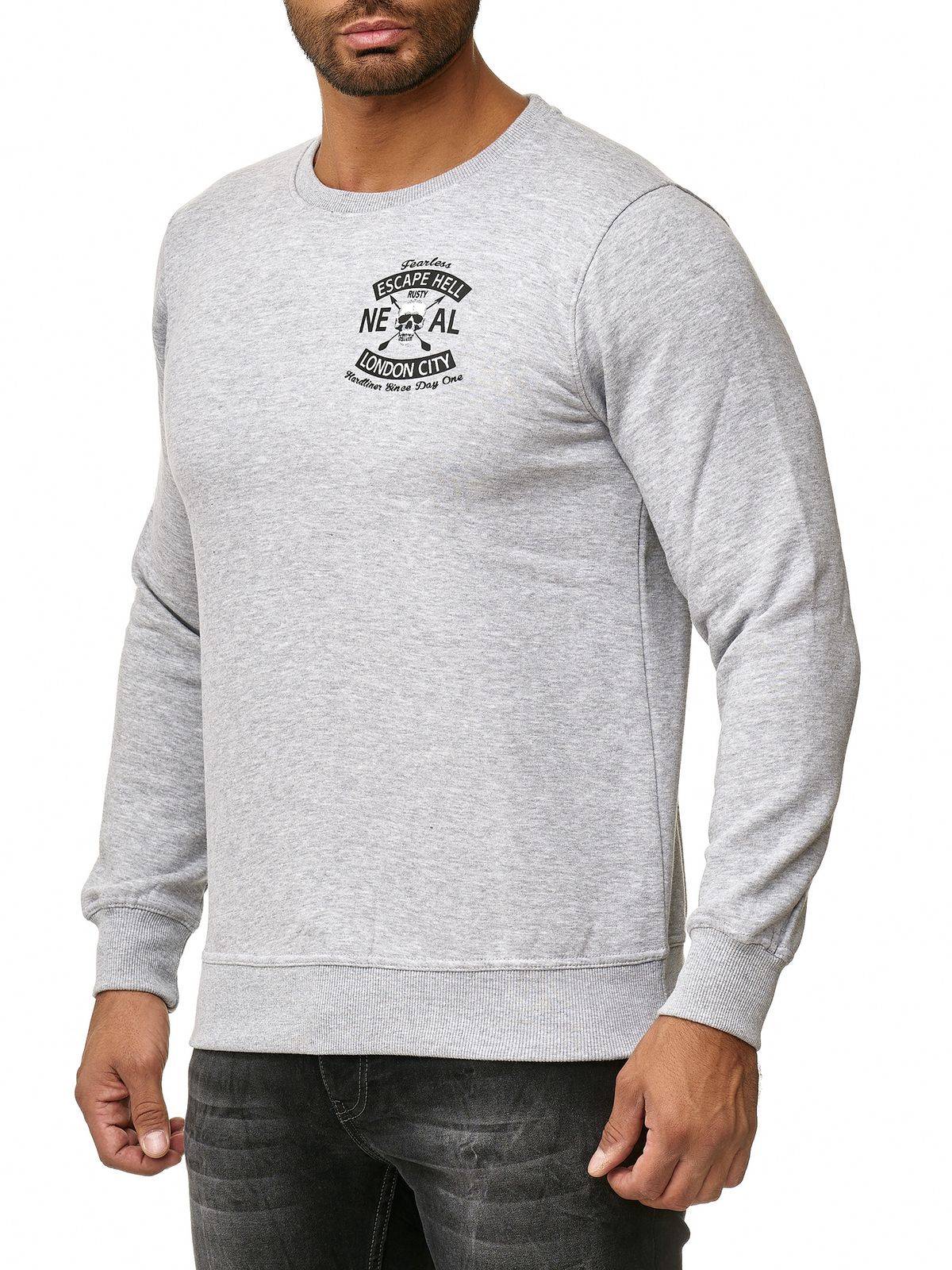 Cool men's crew neck sweater with skull print and large back print, sweater 19104 grey